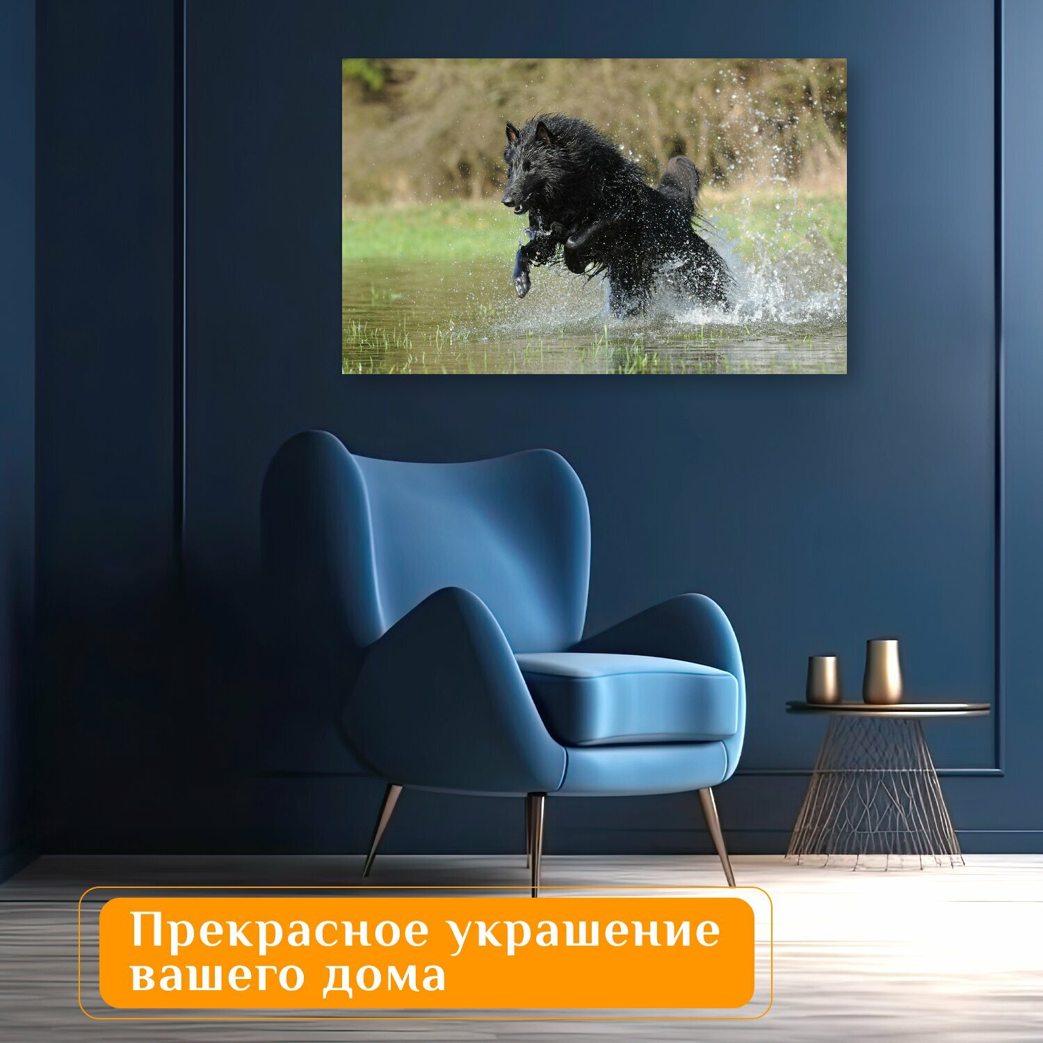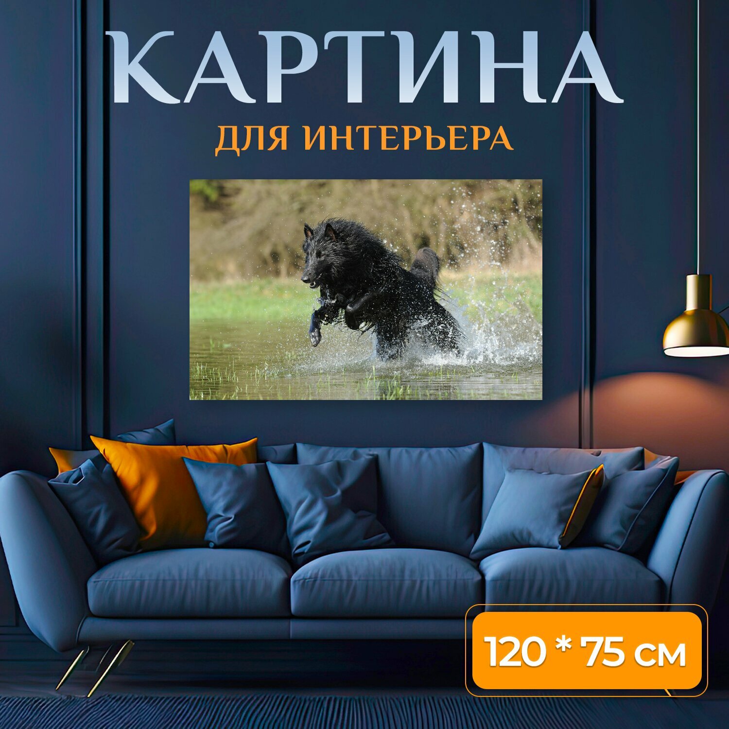 Картина на холсте "Бельгийская овчарка, вода, собака" на подрамнике 120х75 см. для интерьера информация: