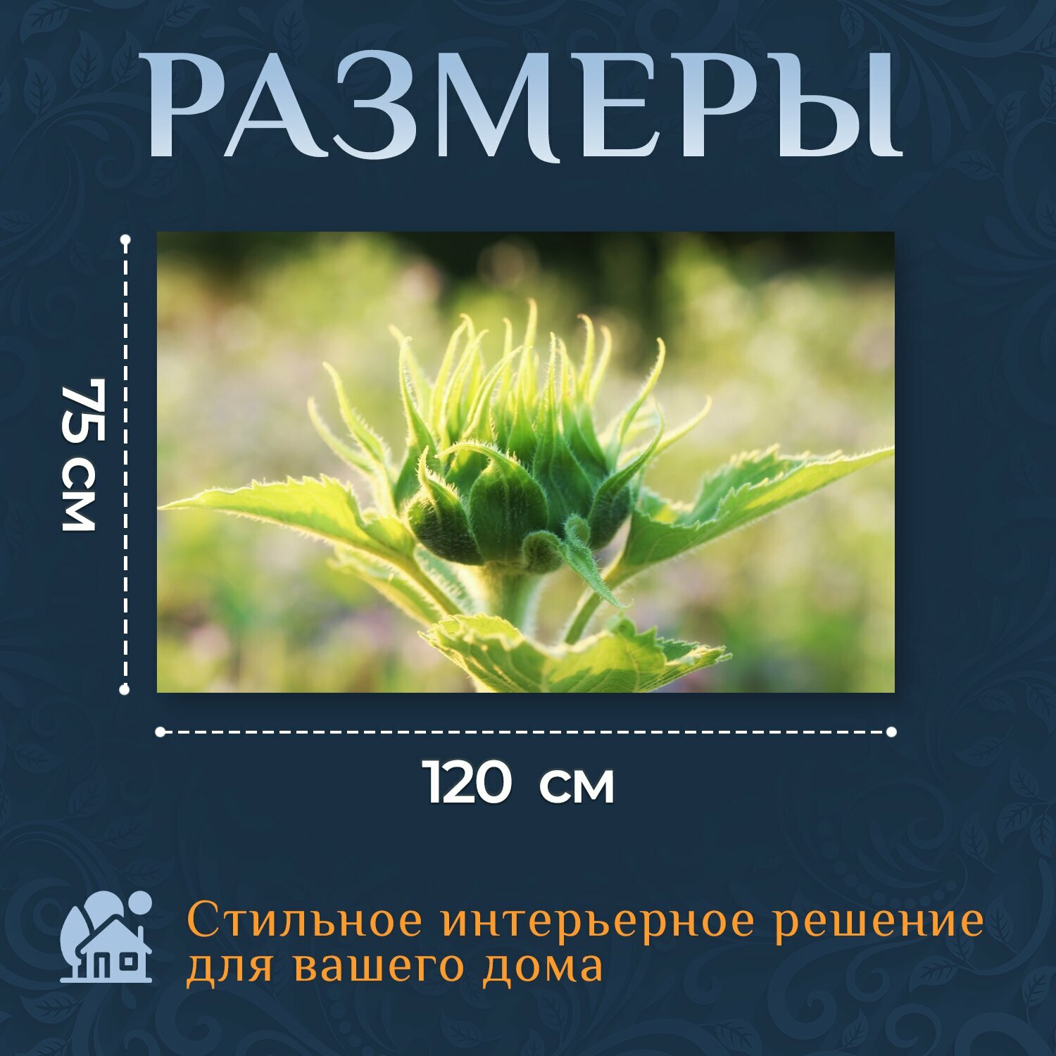 Картина на холсте "Подсолнух, закрыто, цвести" на подрамнике 120х75 см. для интерьера информация: