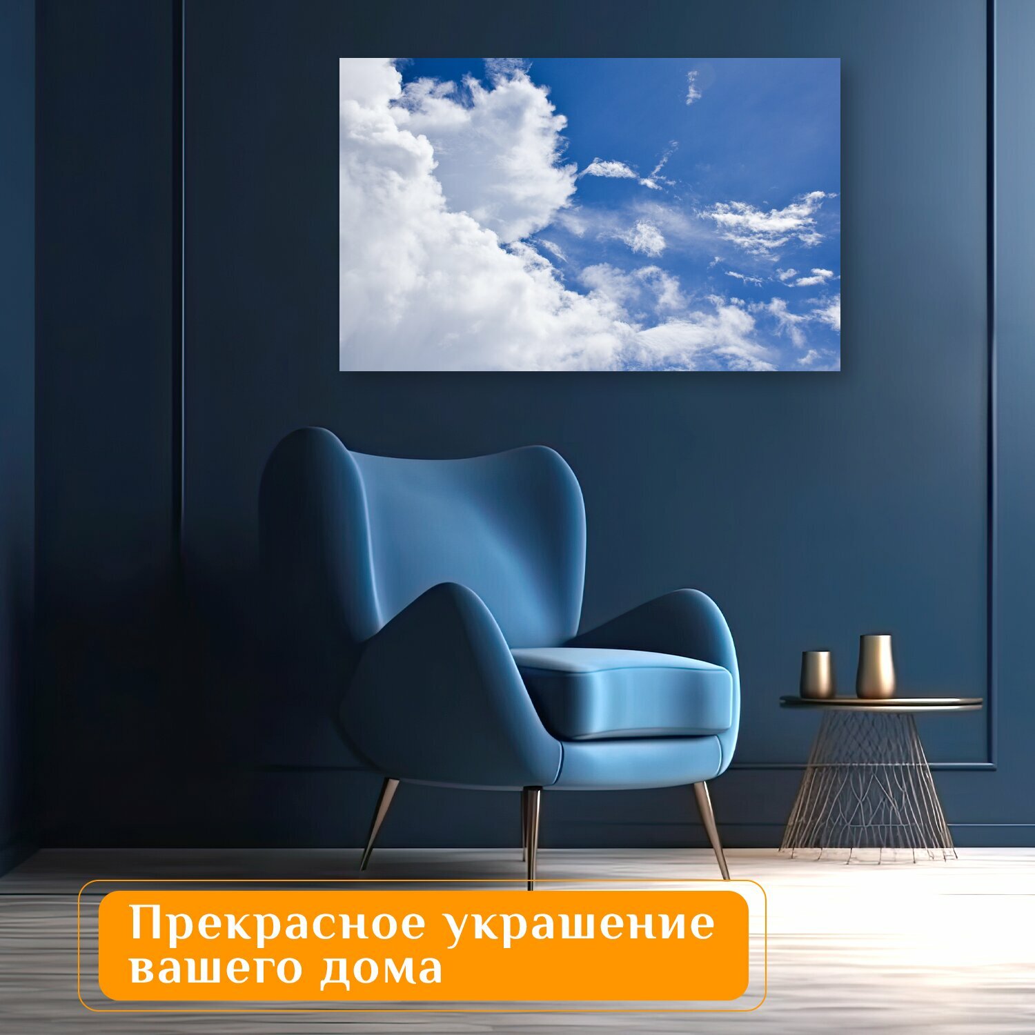 Отзывы на Картина на холсте "Небо, синий, облако" на подрамнике 120х75 см. для интерьера