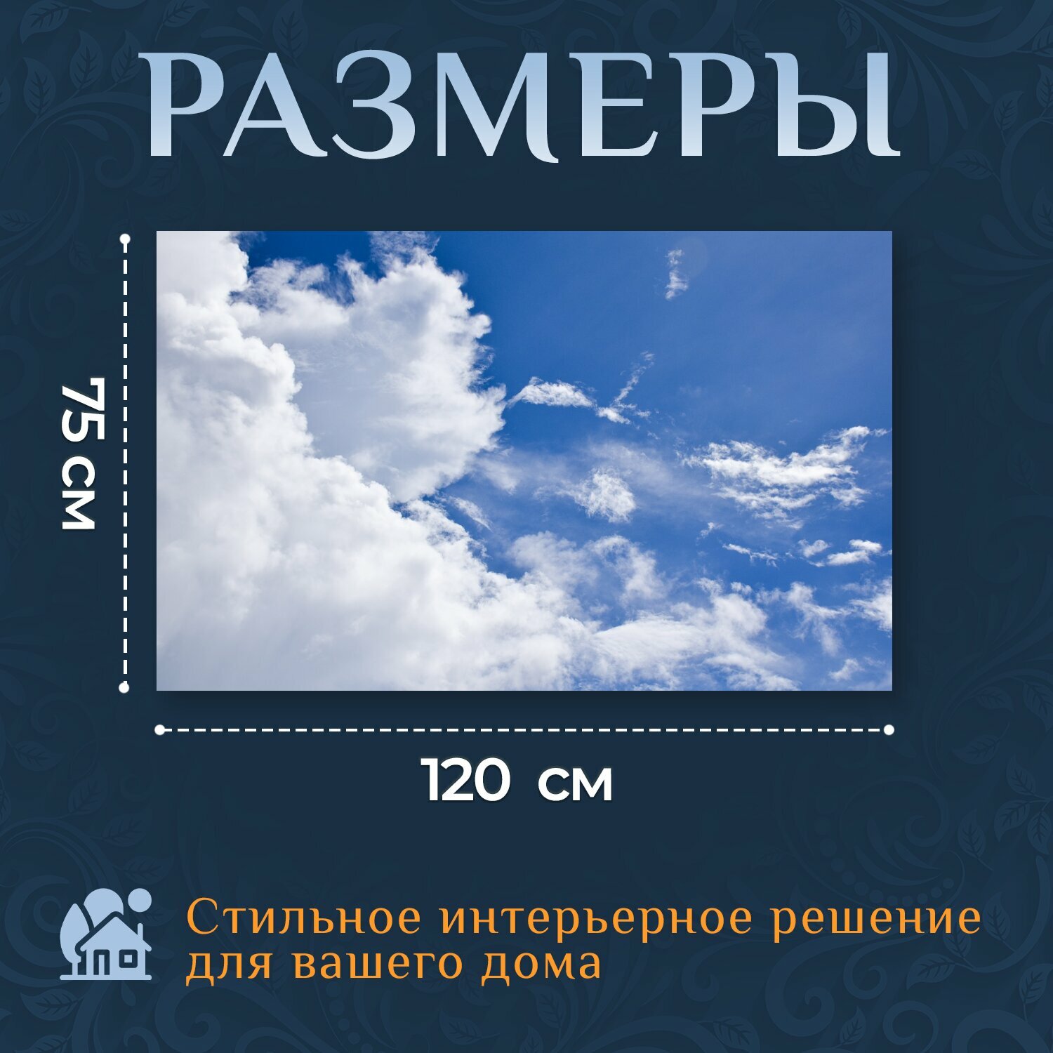 Картина на холсте "Небо, синий, облако" на подрамнике 120х75 см. для интерьера информация: