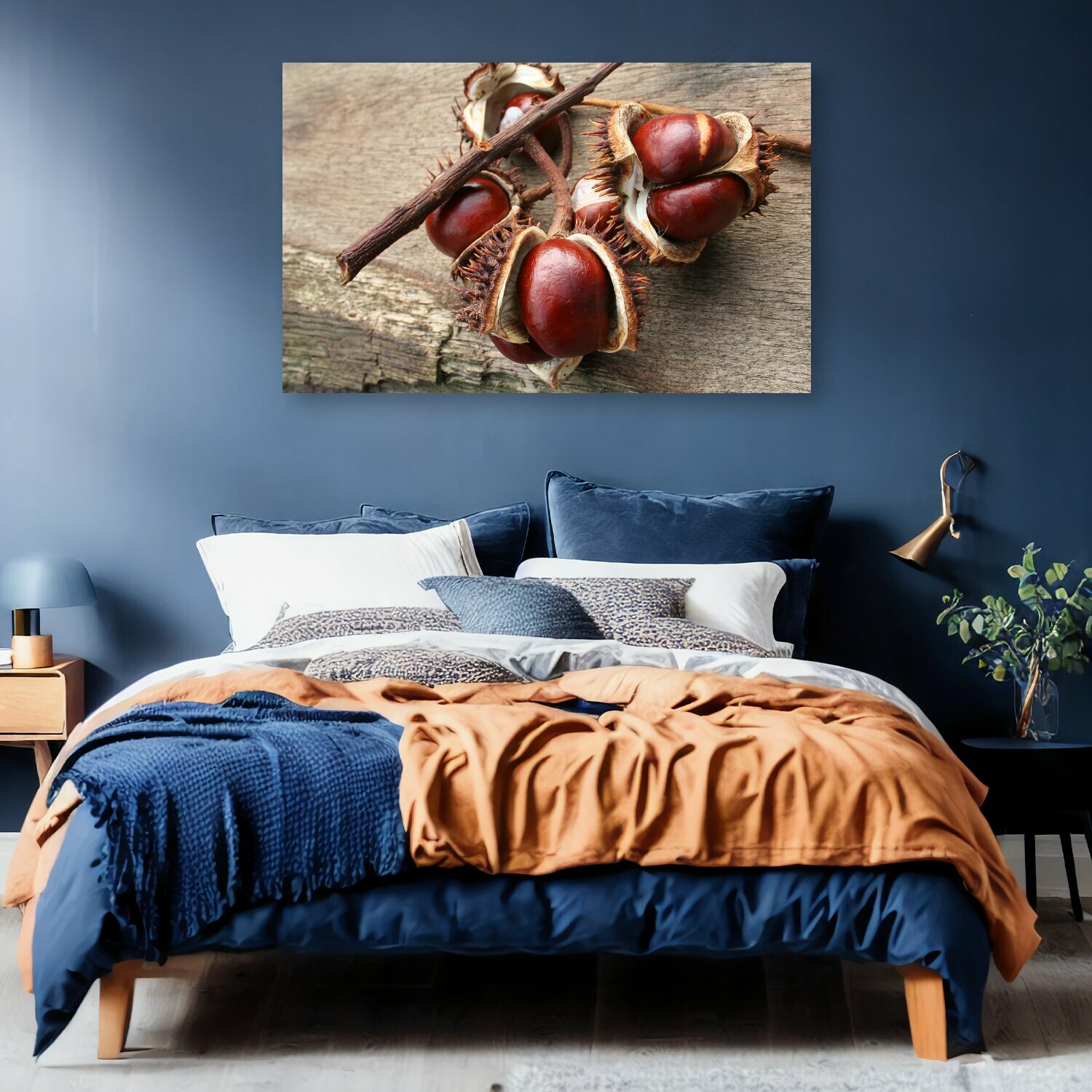 10 цен на Картина на холсте "Каштаны, падение, листья" на подрамнике 120х75 см. для интерьера