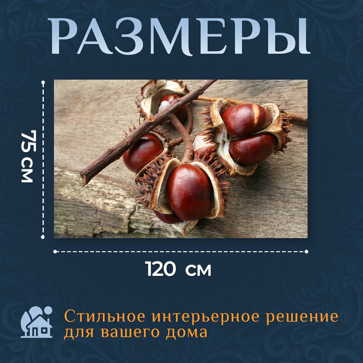 Картина на холсте "Каштаны, падение, листья" на подрамнике 120х75 см. для интерьера информация: