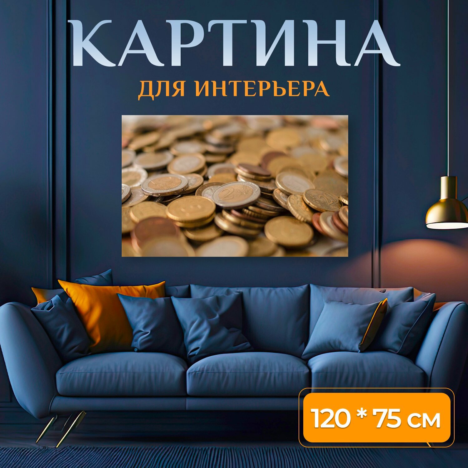 Картина на холсте "Деньги, наличные, монеты" на подрамнике 120х75 см. для интерьера информация:
