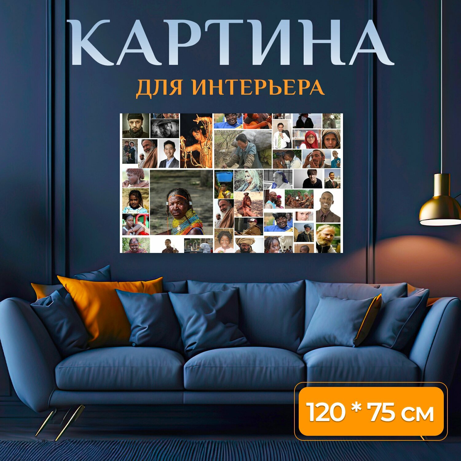 10 цен на Картина на холсте "Фотомонтаж, лица, фото альбом" на подрамнике 120х75 см. для интерьера