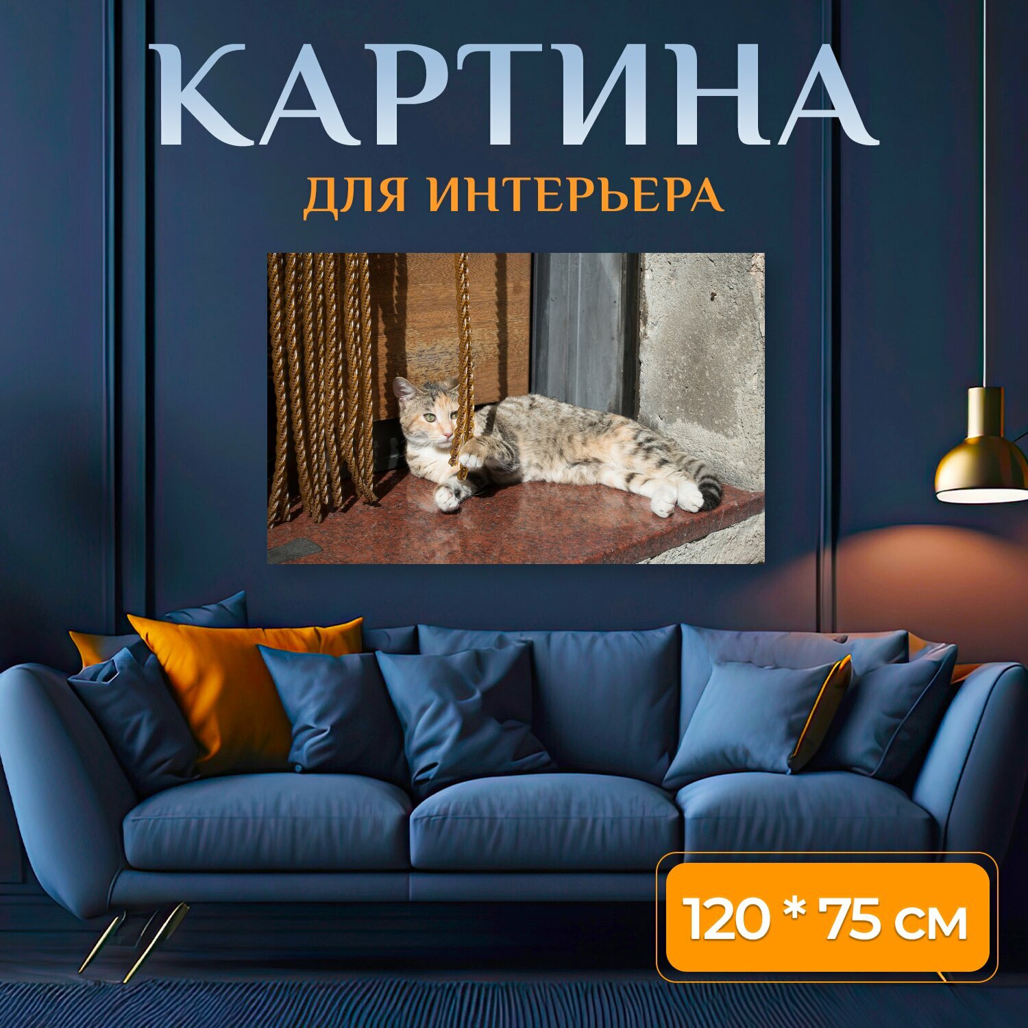 10 цен на Картина на холсте "Кот, играть, занавес" на подрамнике 120х75 см. для интерьера