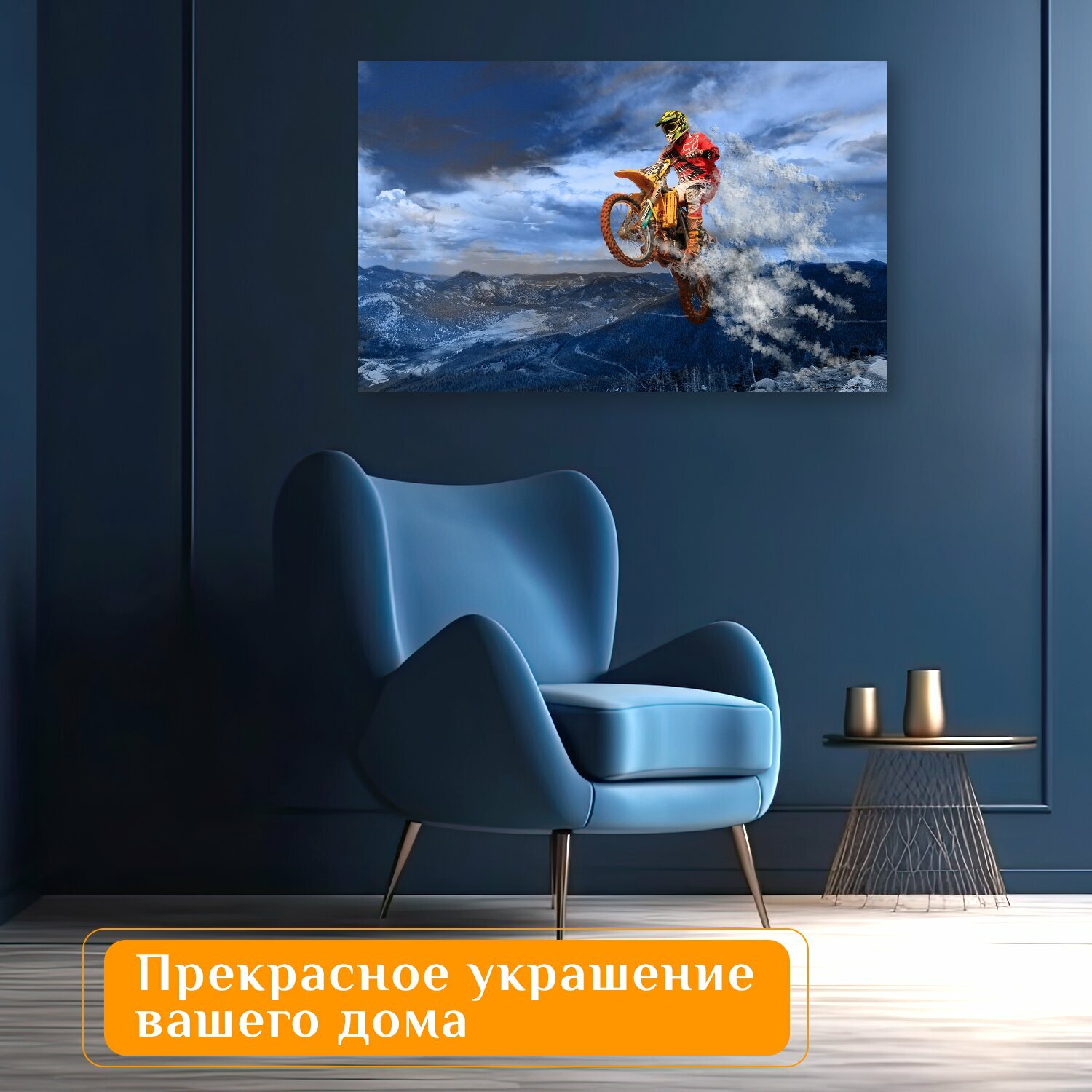 Отзывы на Картина на холсте "Мотоцикл, прыгать, действие" на подрамнике 120х75 см. для интерьера