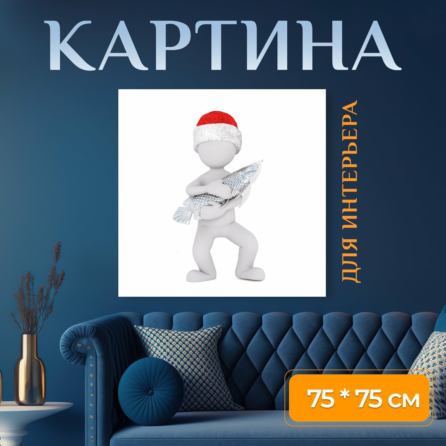 10 цен на Картина на холсте "Рождество, белый кобель, все тело" на подрамнике 75х75 см. для интерьера