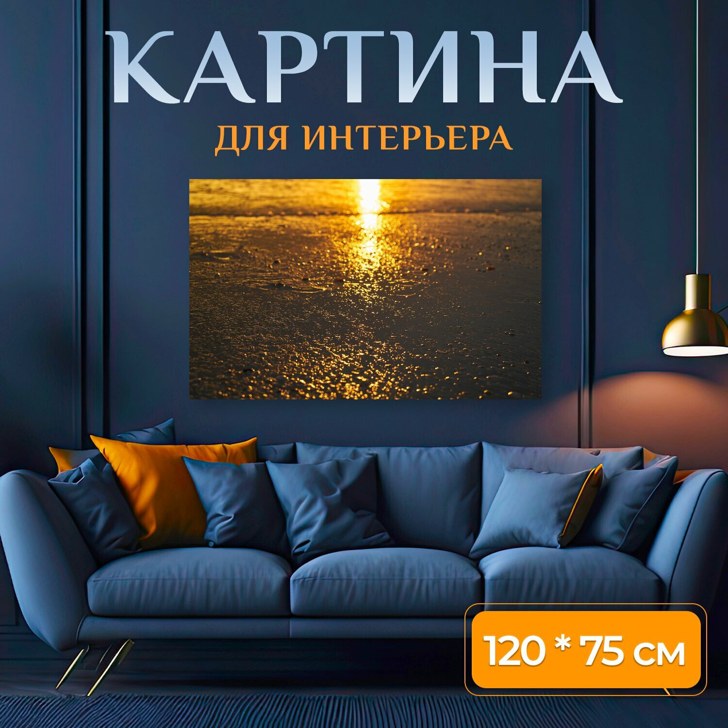 Картина на холсте "Солнце, морской берег, пляж" на подрамнике 120х75 см. для интерьера информация: