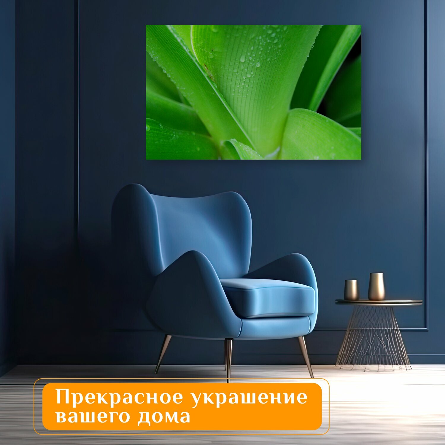 Отзывы на Картина на холсте "Листья, зеленый, капля воды" на подрамнике 120х75 см. для интерьера