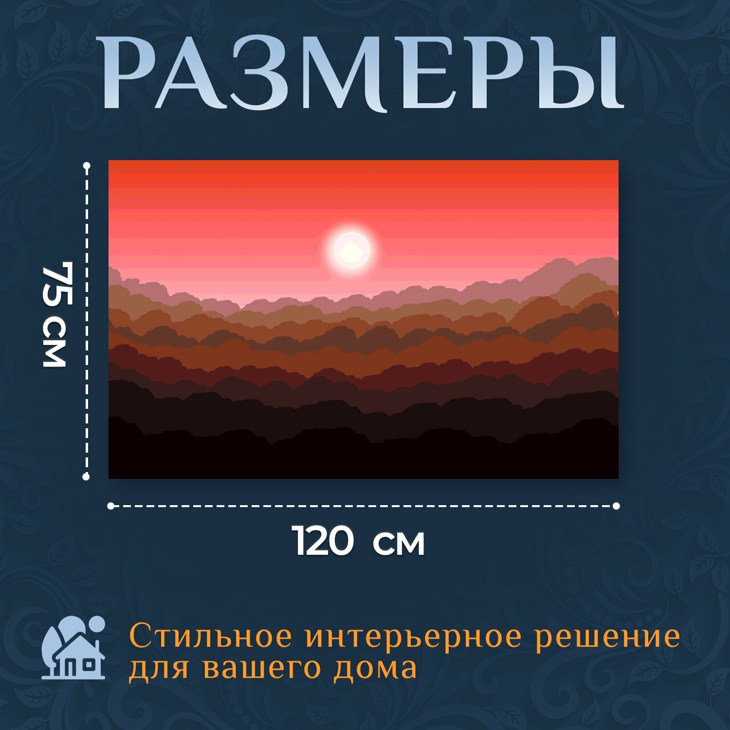 Отзывы на Картина на холсте "Заход солнца, облака, солнце" на подрамнике 120х75 см. для интерьера