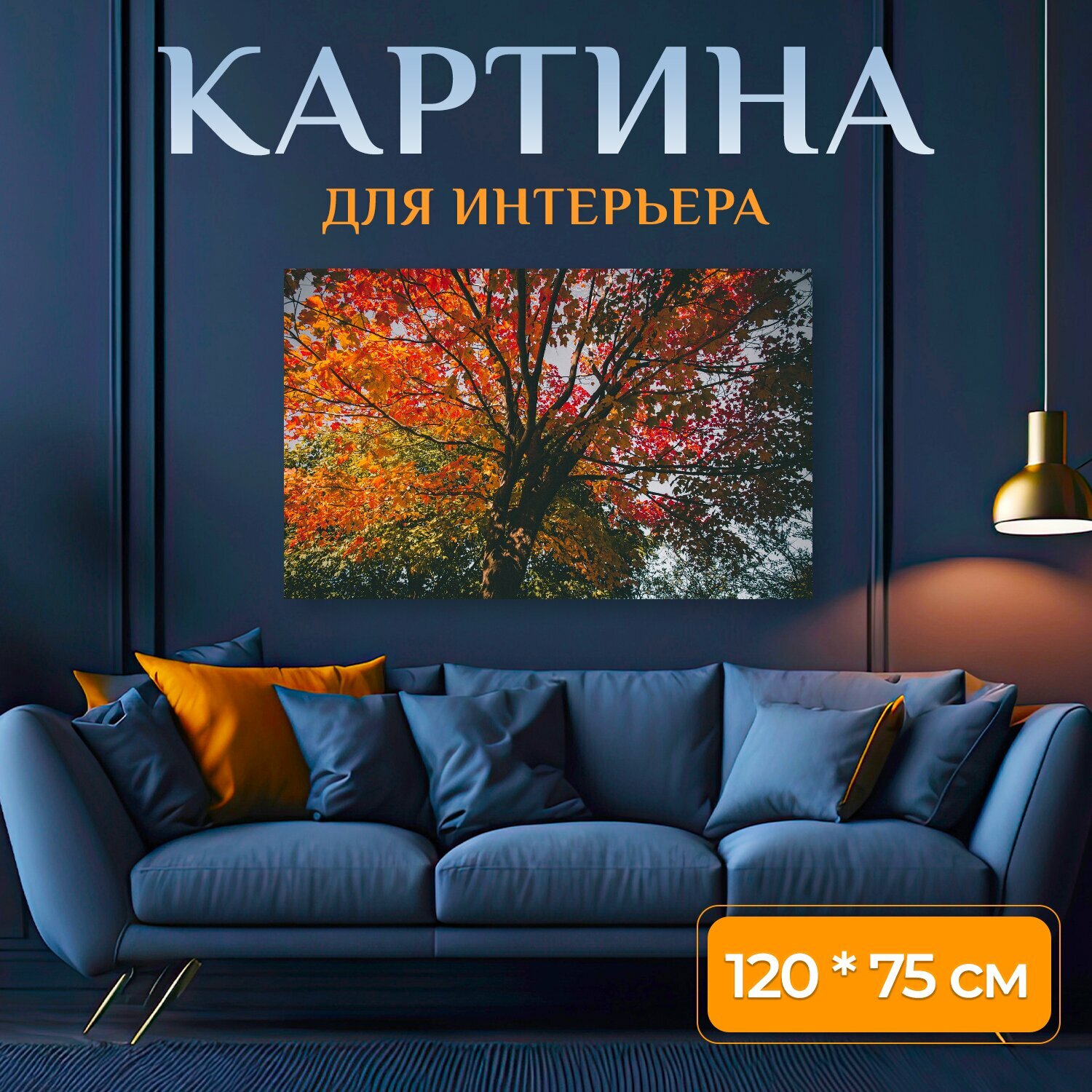 10 цен на Картина на холсте "Дерево, завод, листья" на подрамнике 120х75 см. для интерьера