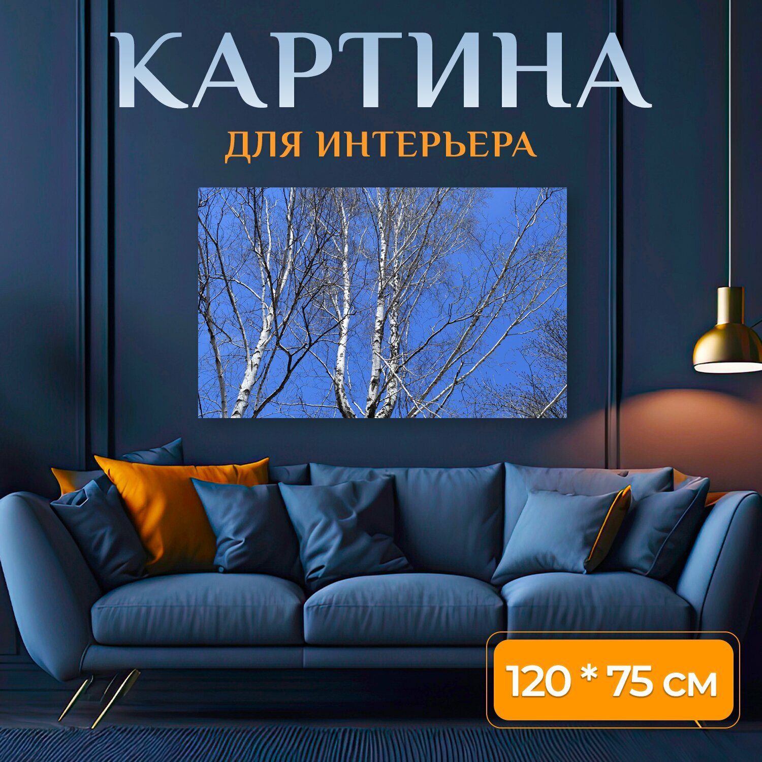 Картина на холсте "Деревья, ветви, небо" на подрамнике 120х75 см. для интерьера информация: