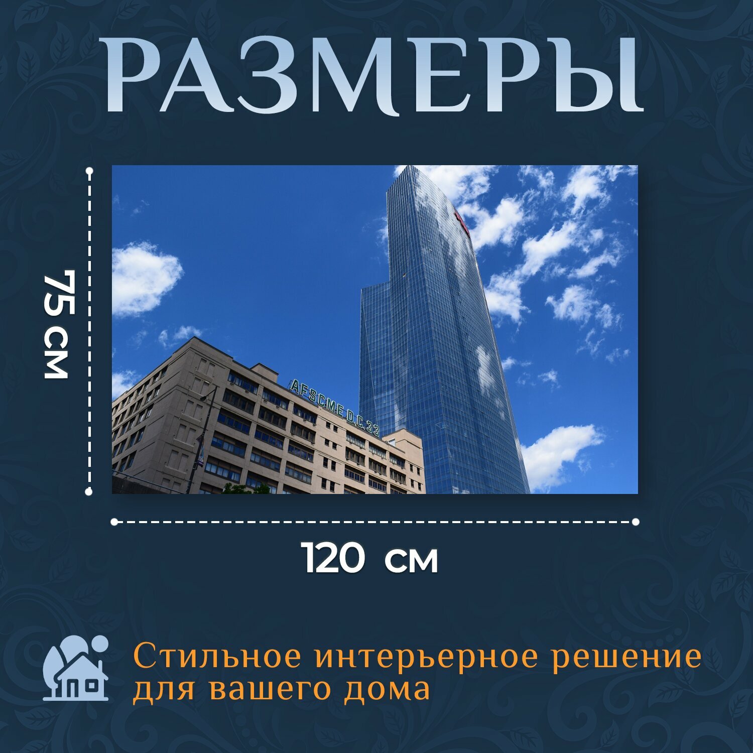 Картина на холсте "Небо, строительство, небоскреб" на подрамнике 120х75 см. для интерьера информация: