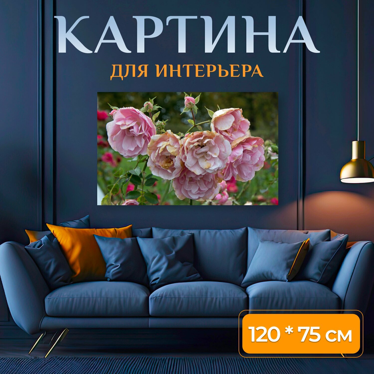 10 цен на Картина на холсте "Падение, лепестки роз, розовый" на подрамнике 120х75 см. для интерьера