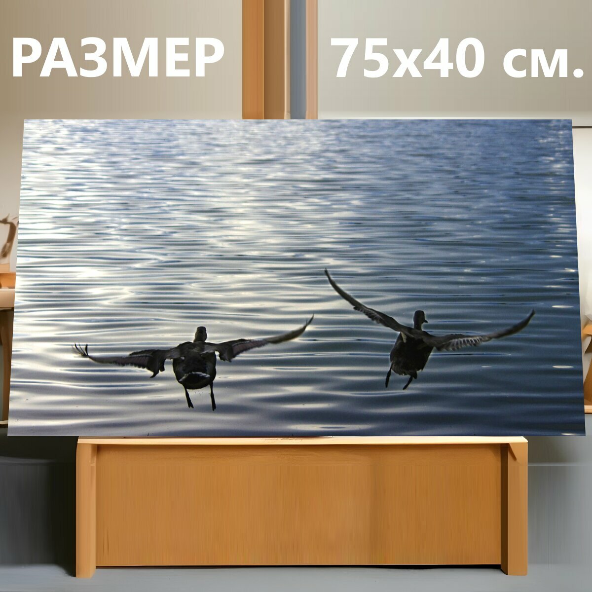 Картина на холсте "Утки, утка, птица" на подрамнике 75х40 см. для интерьера информация: