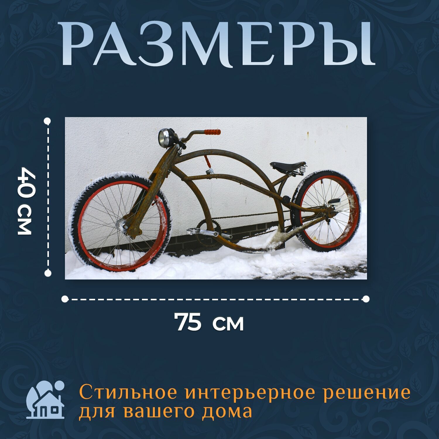 10 цен на Картина на холсте "Велосипед, старинный автомобиль, измельчитель" на подрамнике 75х40 см. для интерьера