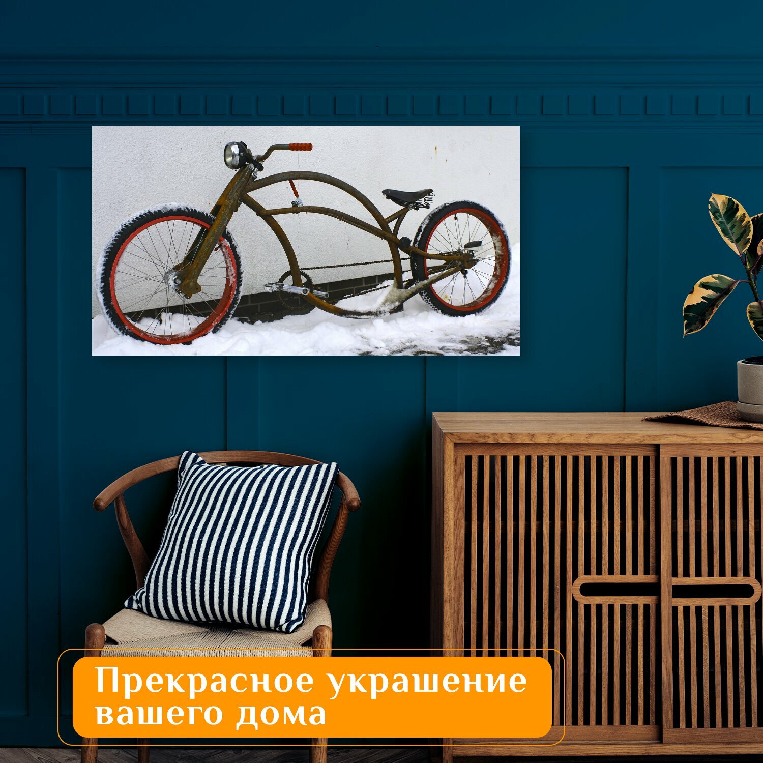Отзывы на Картина на холсте "Велосипед, старинный автомобиль, измельчитель" на подрамнике 75х40 см. для интерьера