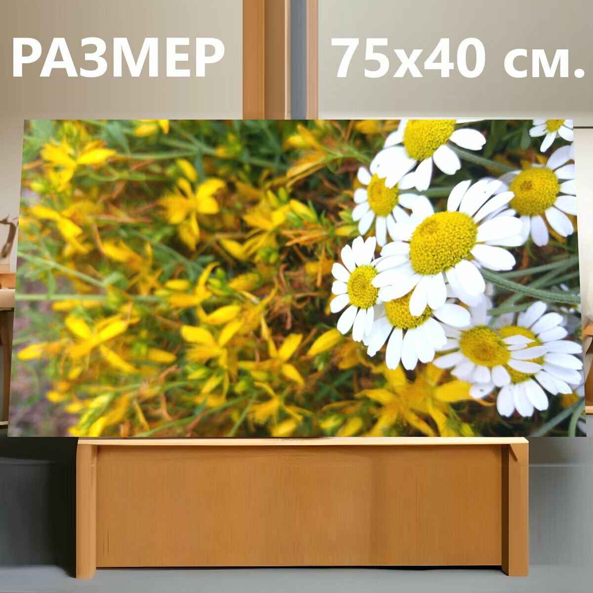 10 цен на Картина на холсте "Дейзи, цветок, трава" на подрамнике 75х40 см. для интерьера