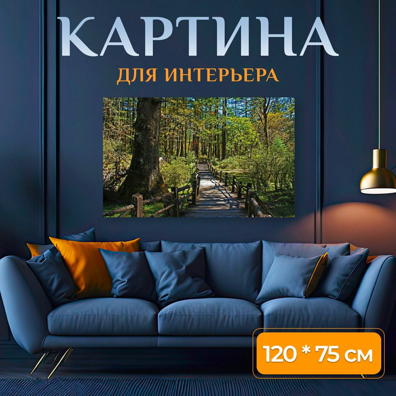 Картина на холсте "Лицзян, нефритовый дракон снежная гора, плато елово" на подрамнике 120х75 см. для интерьера информация: