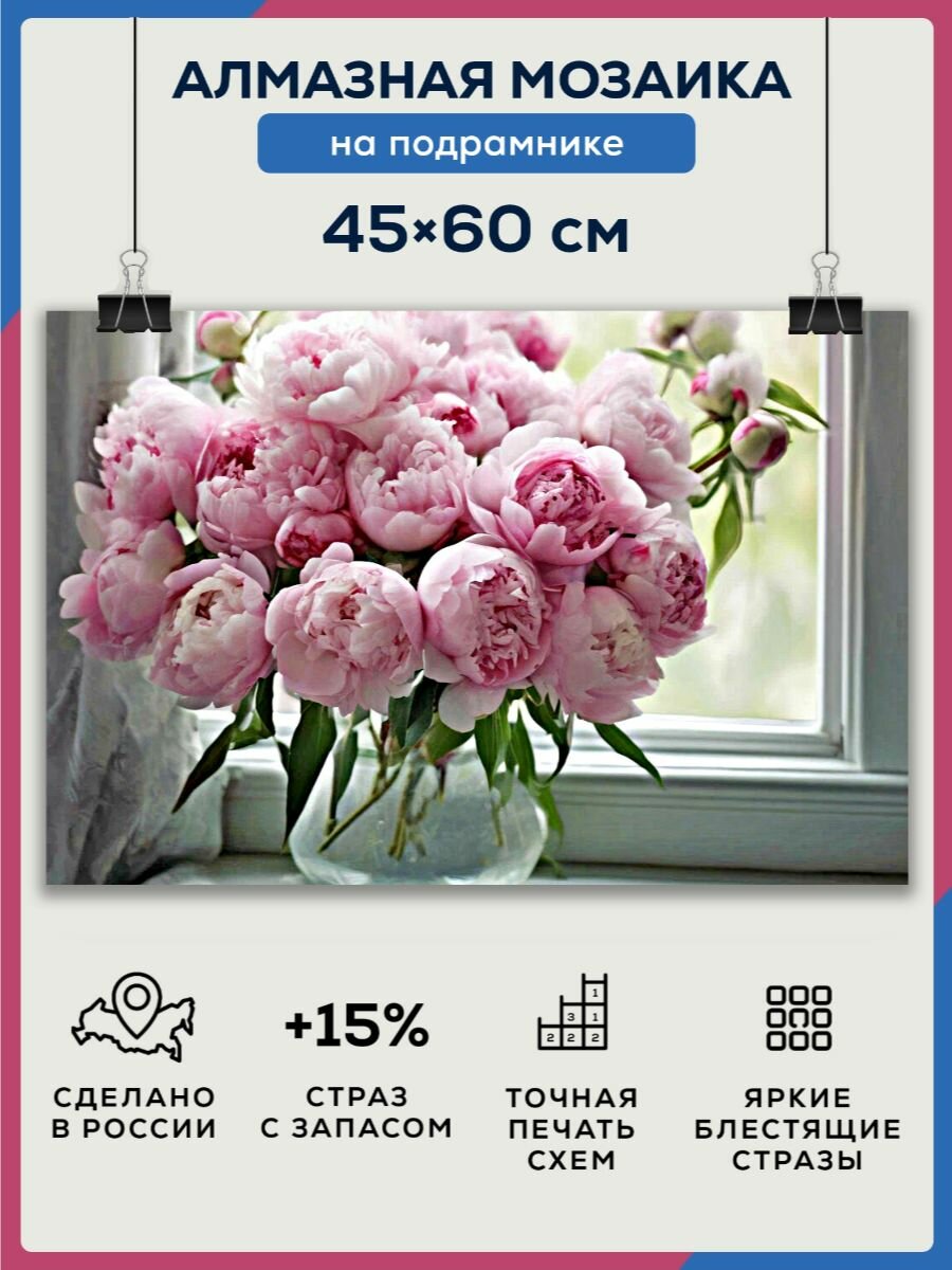 10 цен на Алмазная мозаика 45x60 Букет пионов на подрамнике