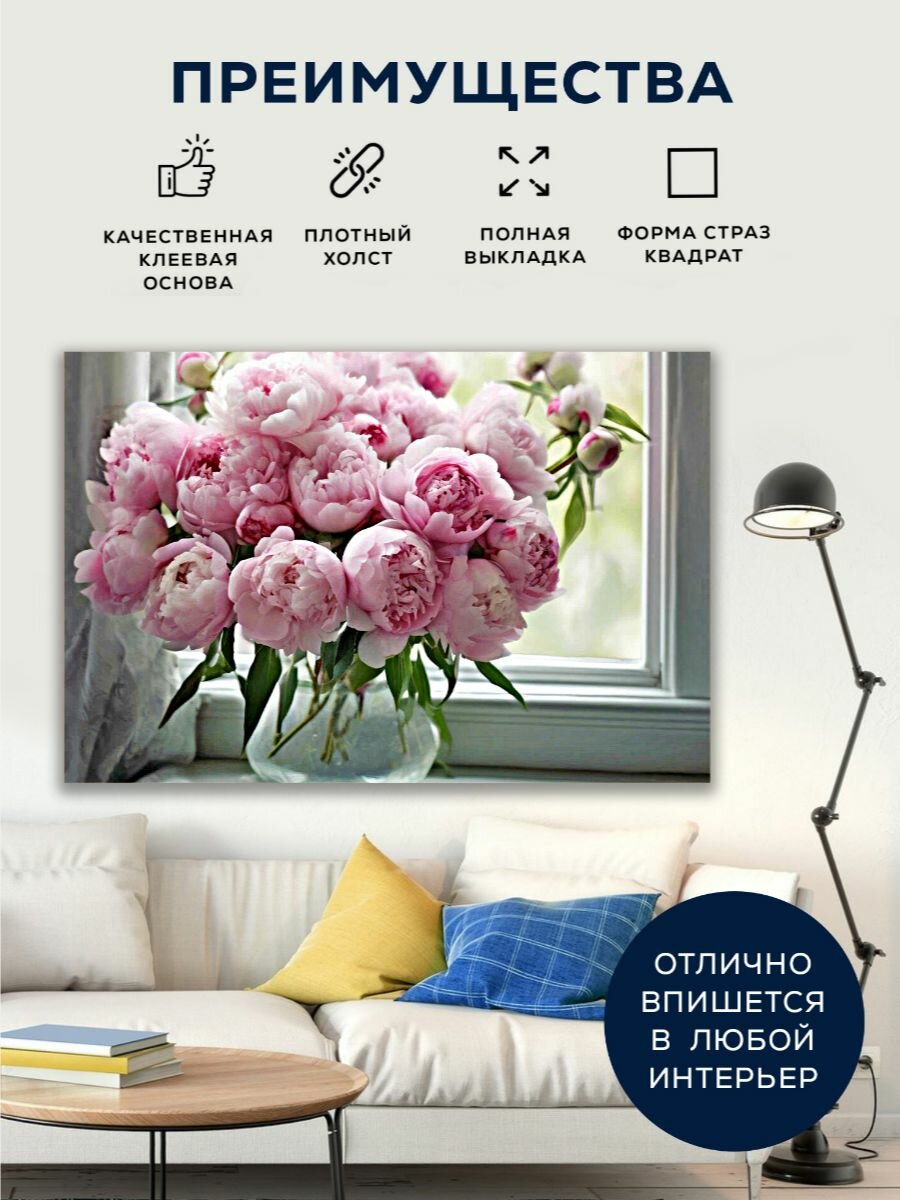 Алмазная мозаика 45x60 Букет пионов без подрамника информация: