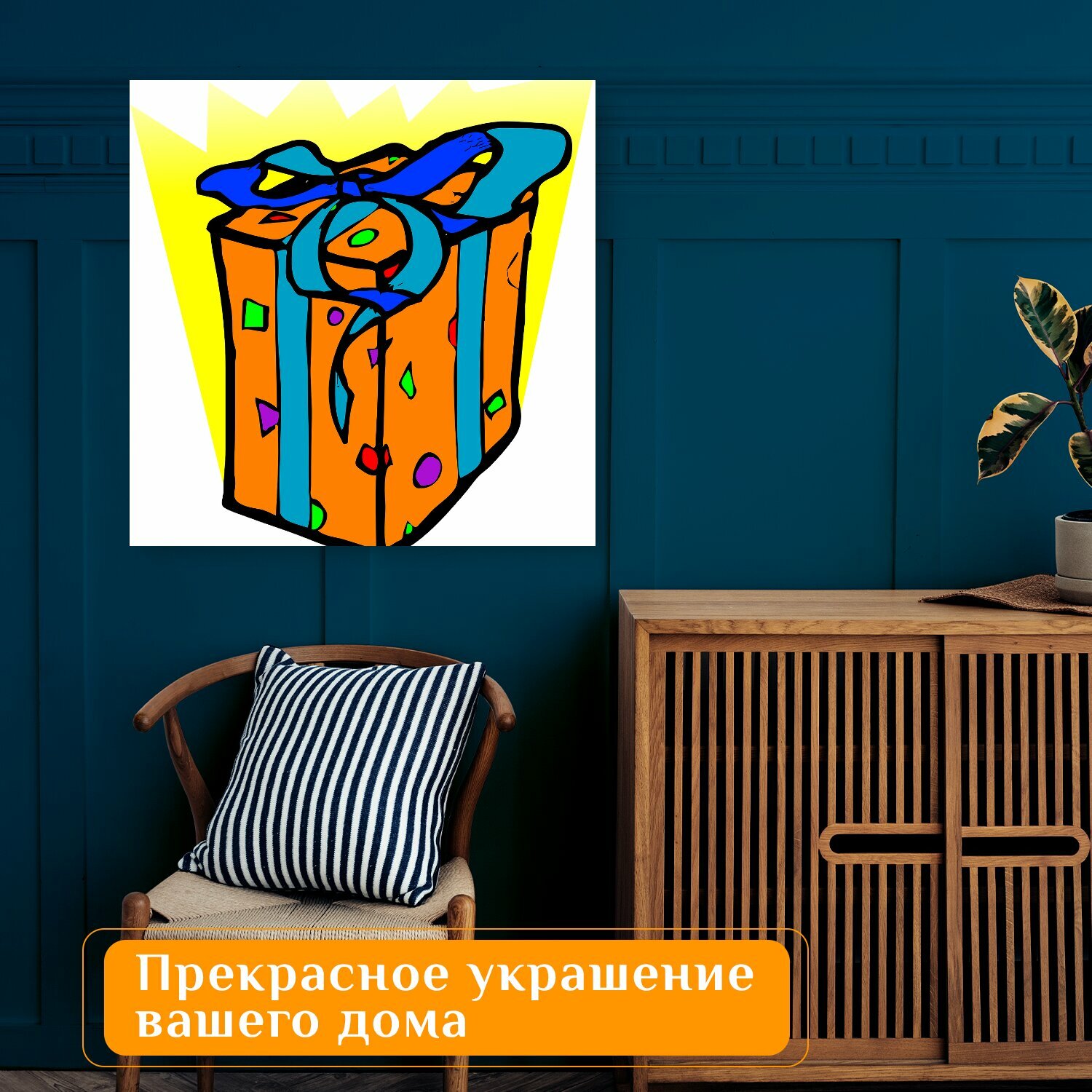 10 цен на Картина на холсте "Подарок, день рождения, счастливый" на подрамнике 75х75 см. для интерьера