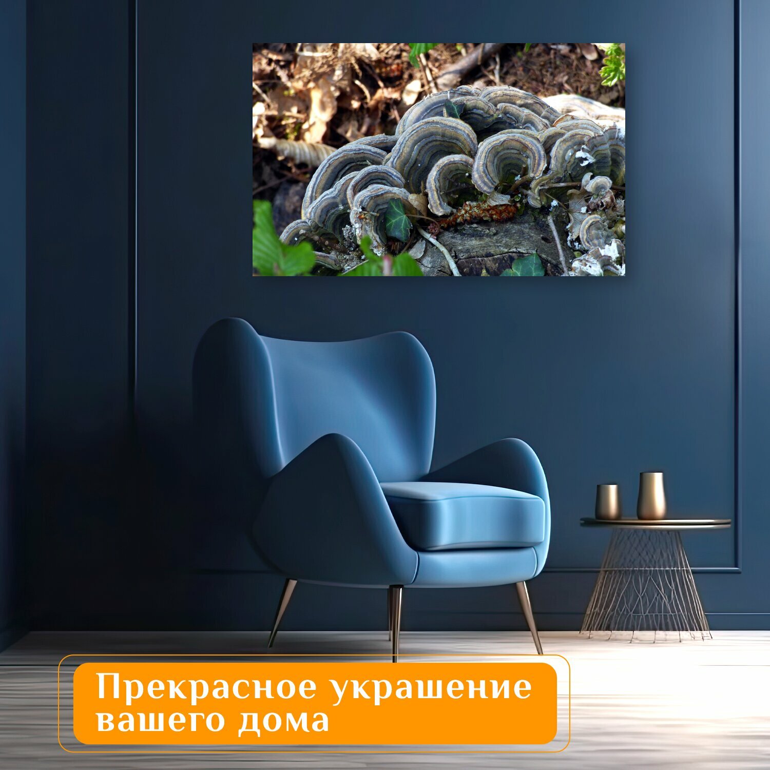 10 цен на Картина на холсте "Грибы, трутовик, древесина" на подрамнике 120х75 см. для интерьера
