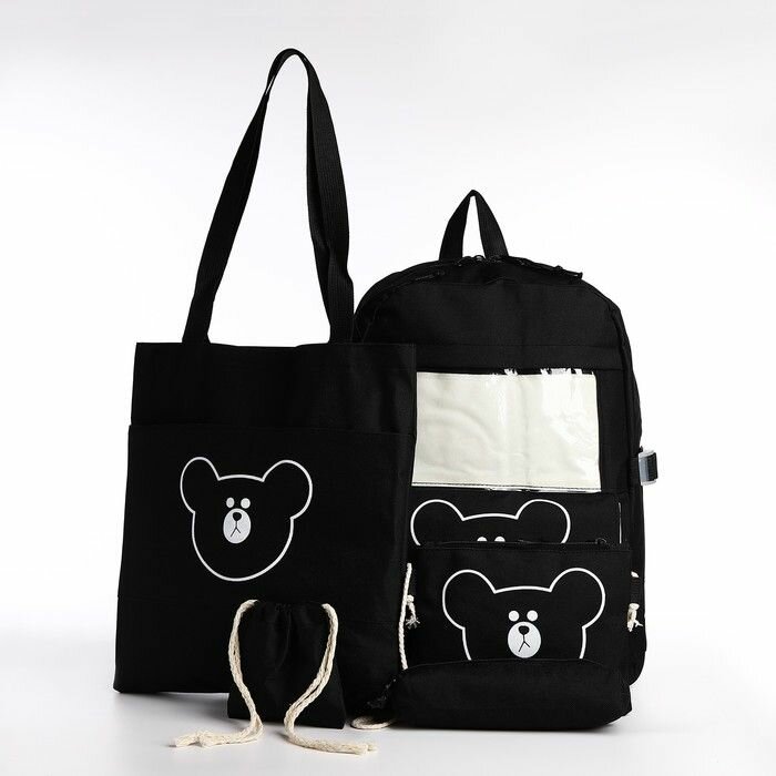 Школьный набор. Рюкзак на молнии, шопер, сумка, пенал, мешочек для монет, цвет чёрный информация:
