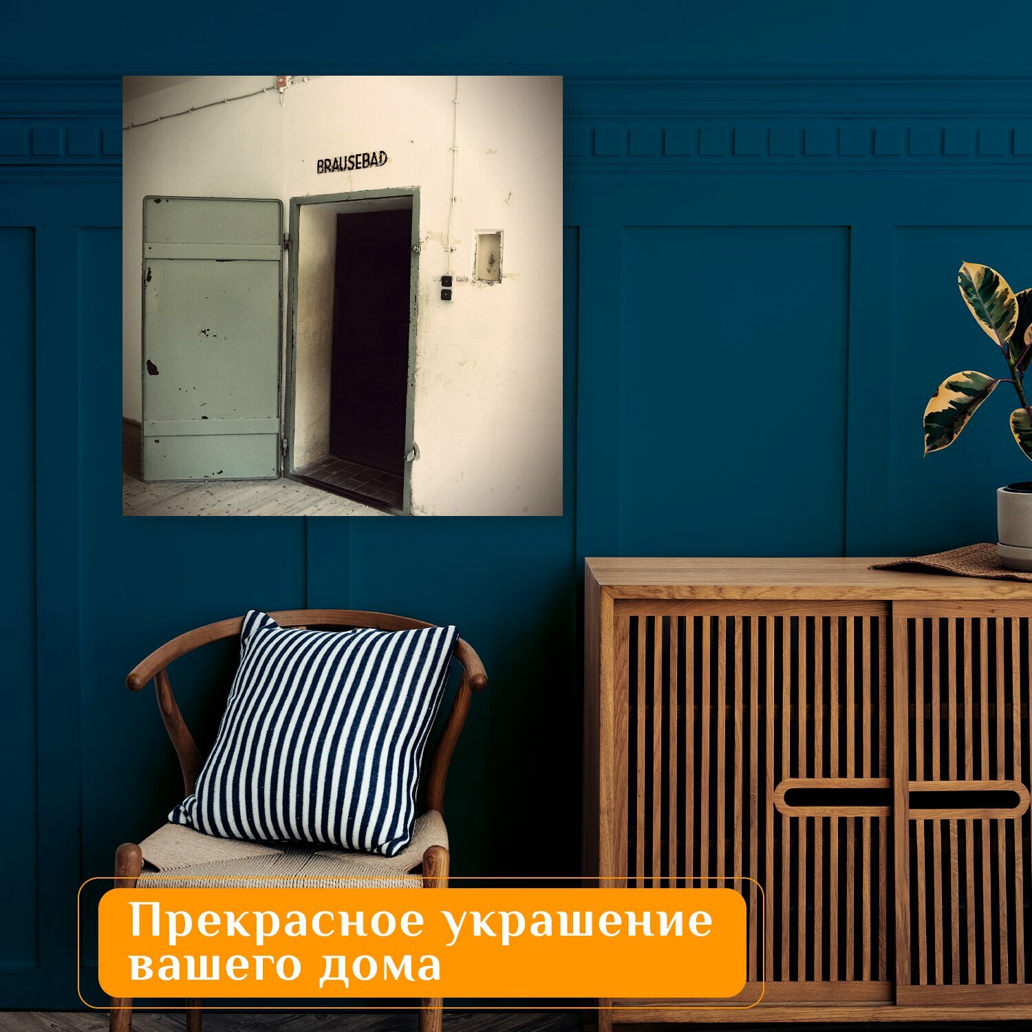 Картина на холсте "Концентрационный лагерь, дахау, душевая кабина" на подрамнике 75х75 см. для интерьера информация: