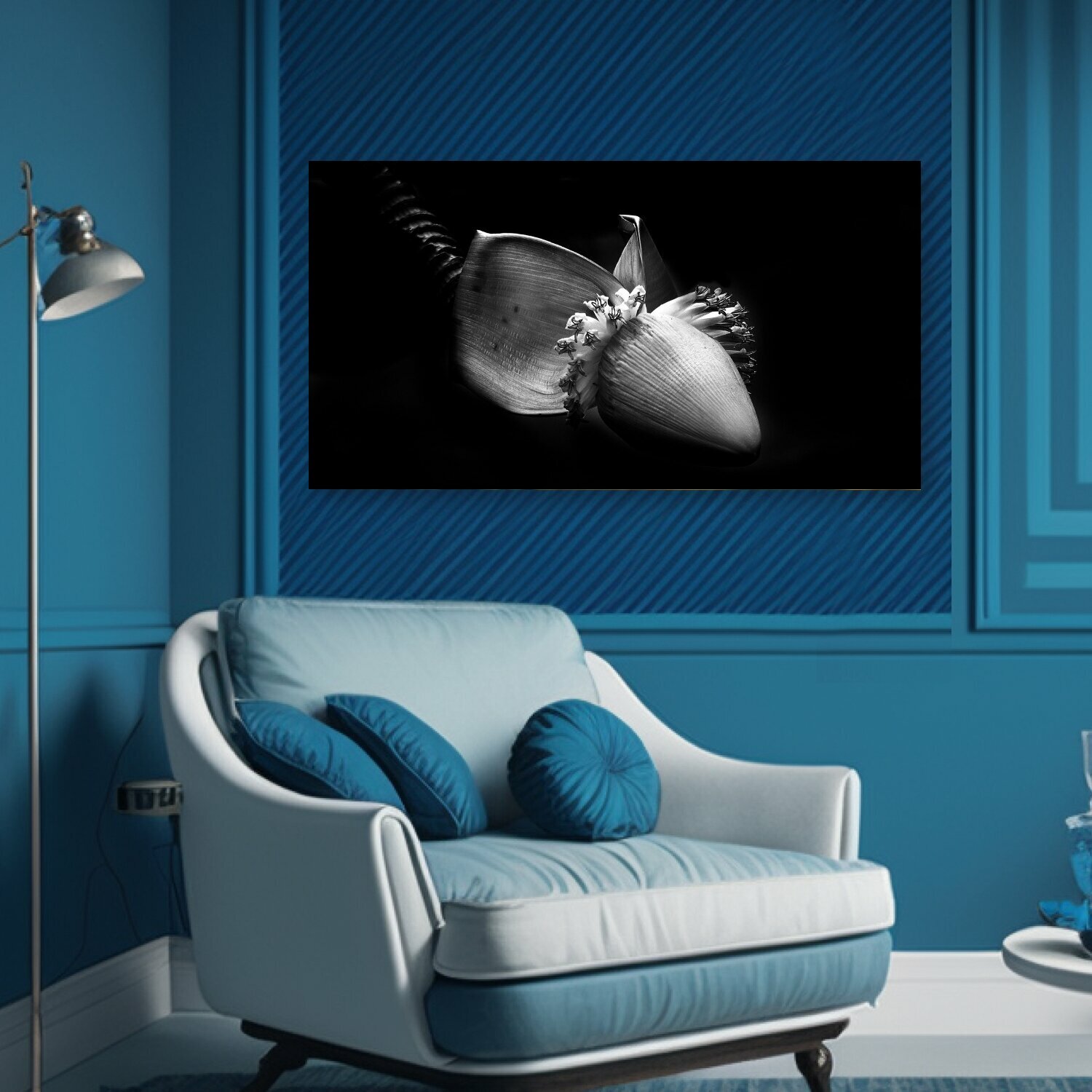 Картина на холсте "Банан, цветок банана, банановое дерево" на подрамнике 75х40 см. для интерьера информация:
