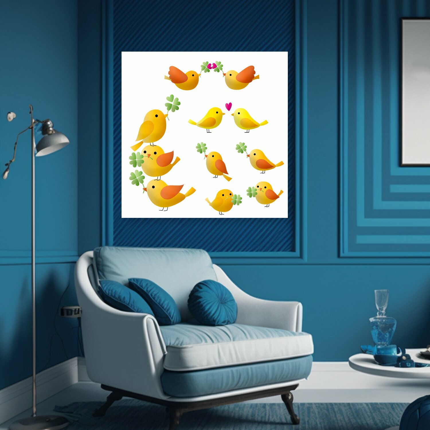Картина на холсте "Птицы, клевер, птичья башня" на подрамнике 75х75 см. для интерьера информация: