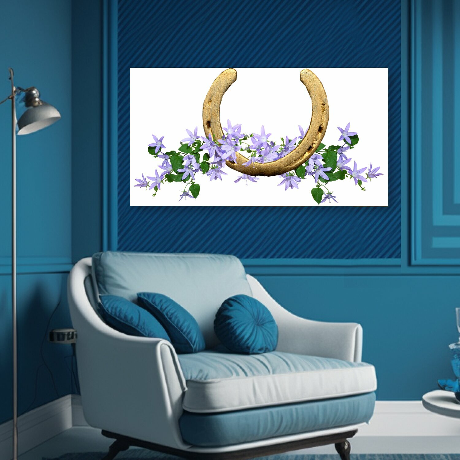 10 цен на Картина на холсте "Лошади обуви, счастливый, цветы" на подрамнике 75х40 см. для интерьера