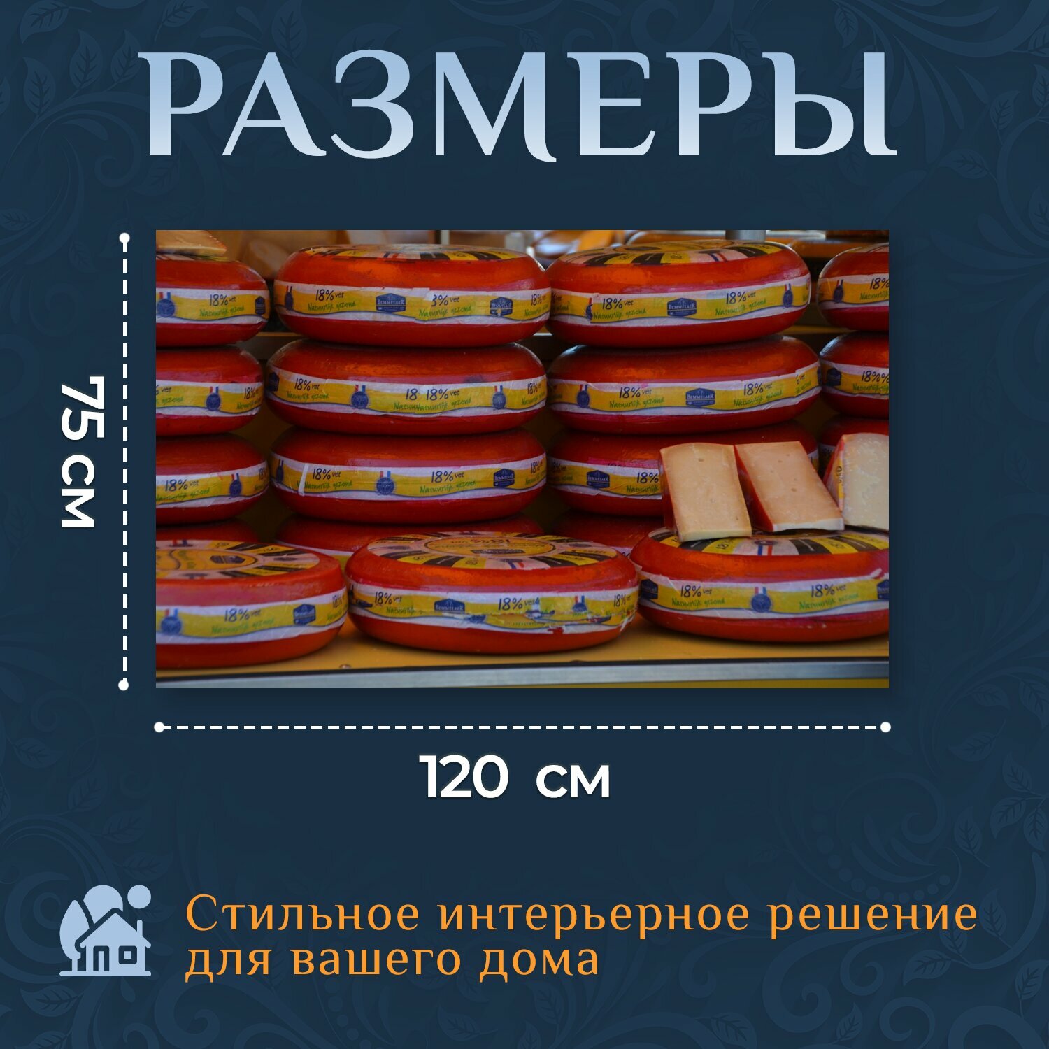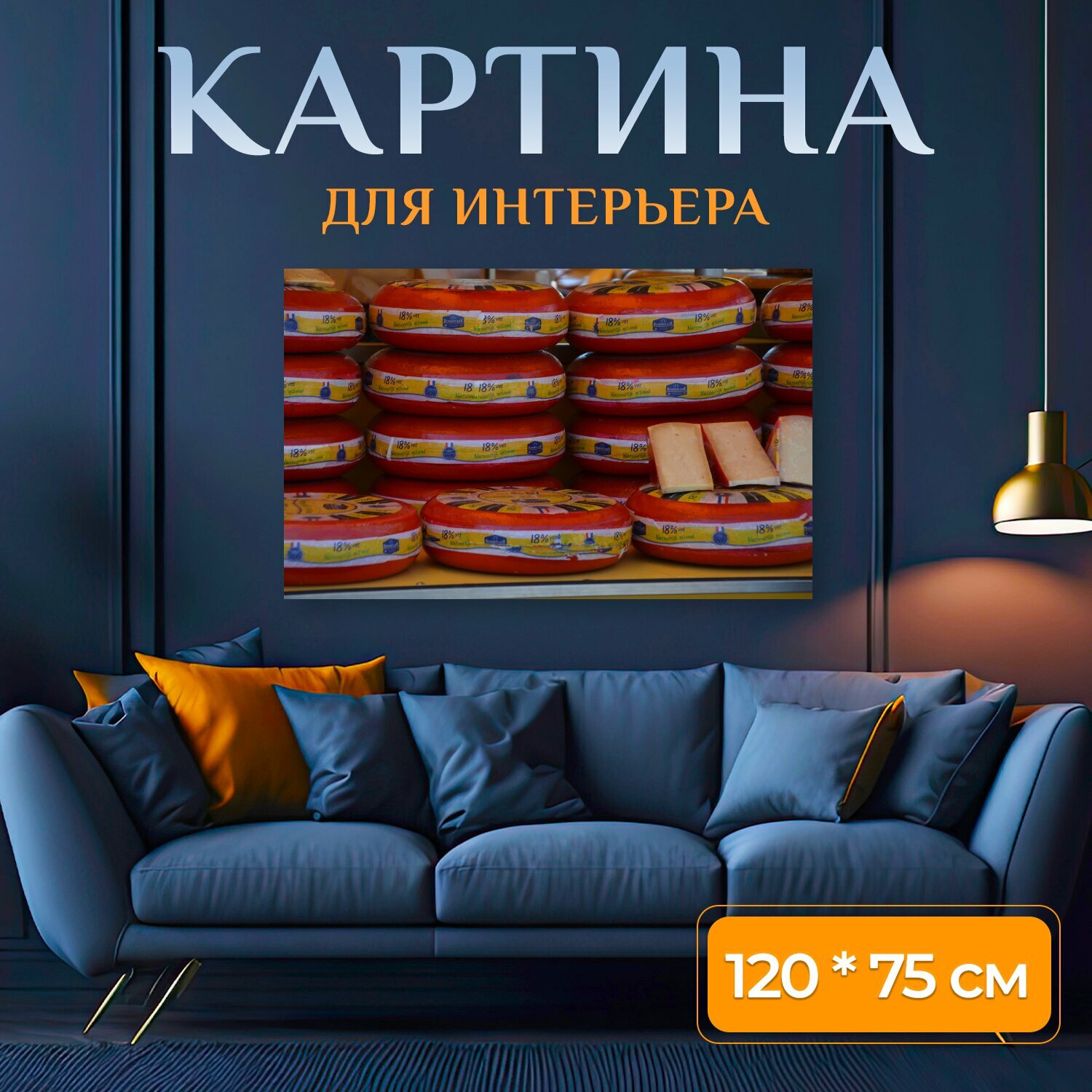 Картина на холсте "Сыр, еда, вкусный" на подрамнике 120х75 см. для интерьера информация: