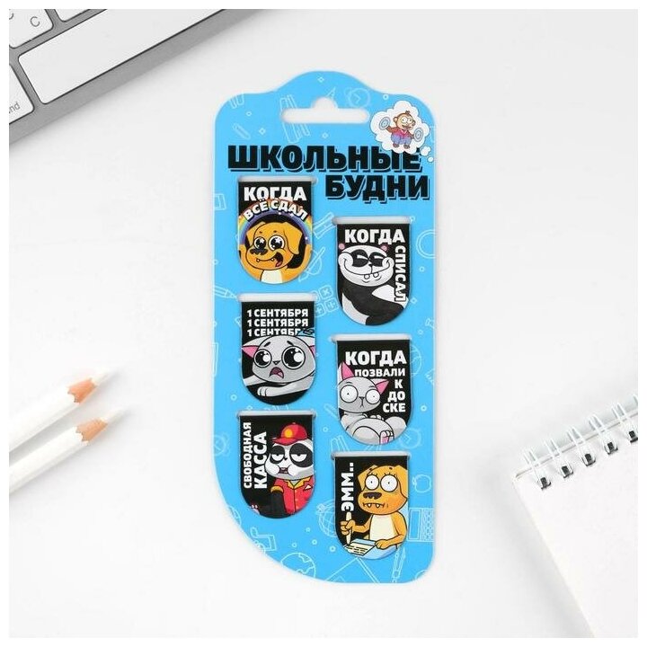 Закладки магнитные на подложке «Школьные будни», 6 шт информация: