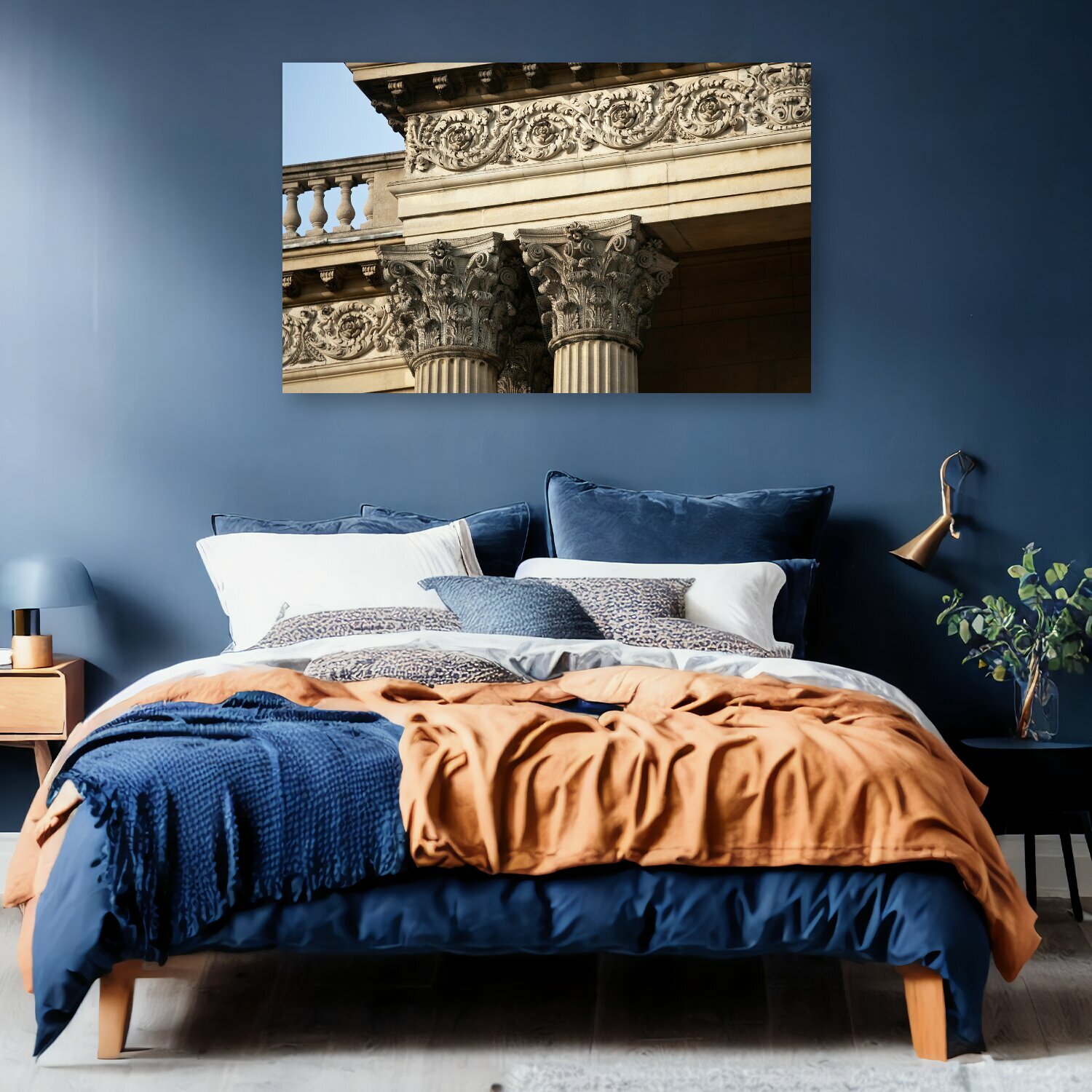 10 цен на Картина на холсте "Коринфские колонны, антаблемент, балясины" на подрамнике 120х75 см. для интерьера