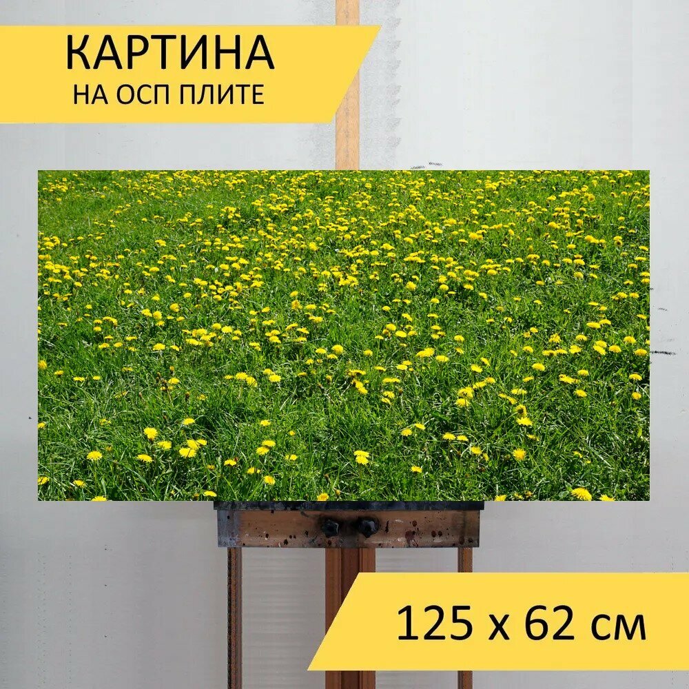 10 цен на Картина на ОСП "Луг, желтый, зеленый" 125x62 см. для интерьера на стену