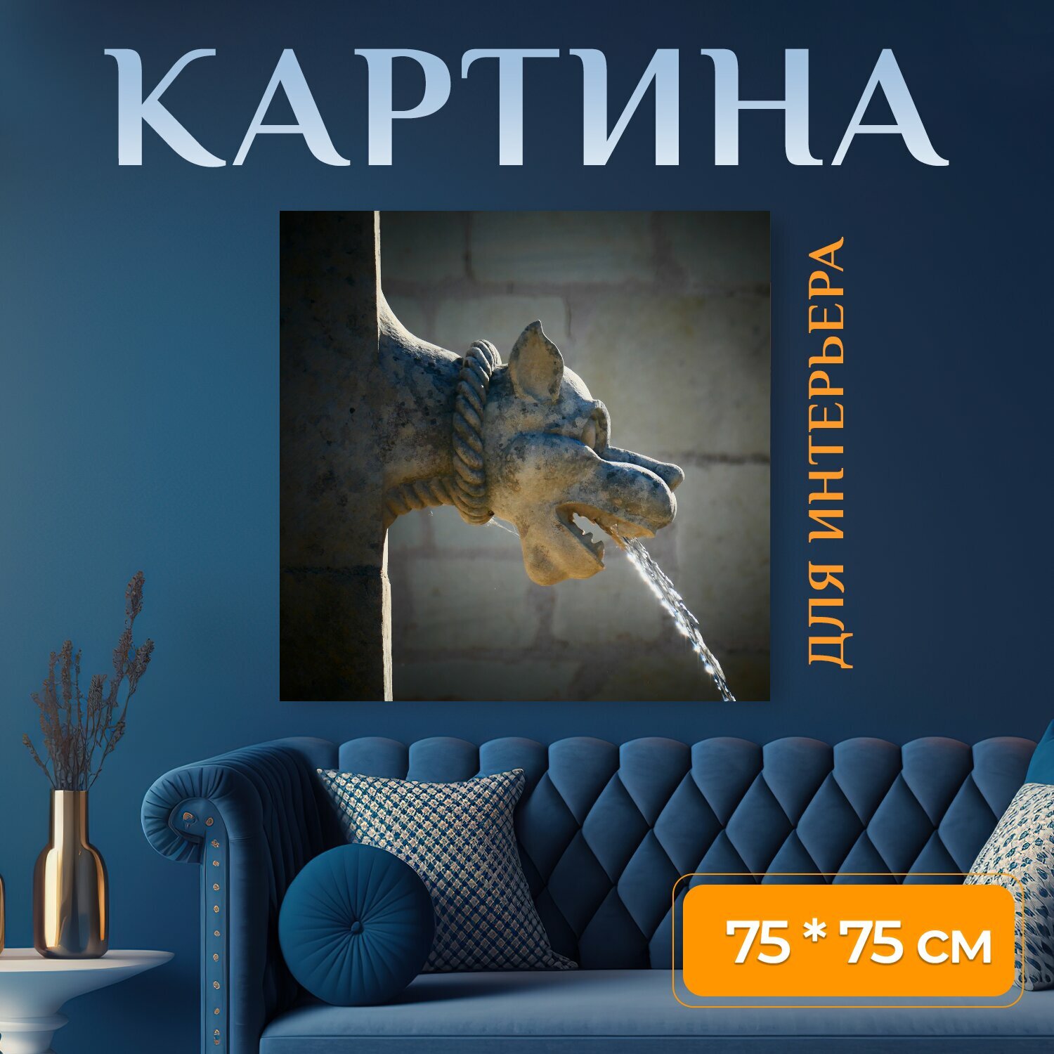 10 цен на Картина на холсте "Фонтан, лев, воды" на подрамнике 75х75 см. для интерьера