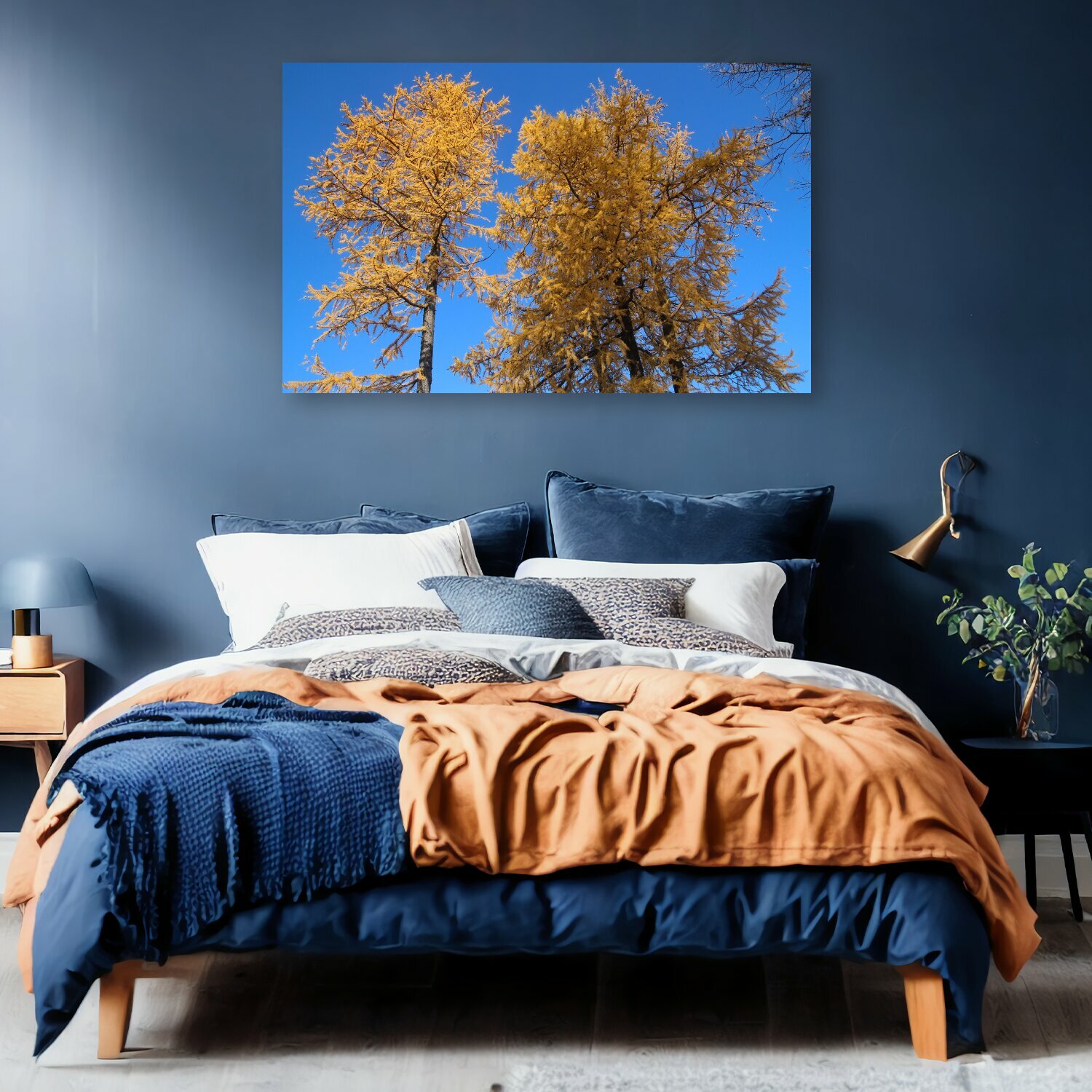 10 цен на Картина на холсте "Осень, деревья, лиственница" на подрамнике 120х75 см. для интерьера