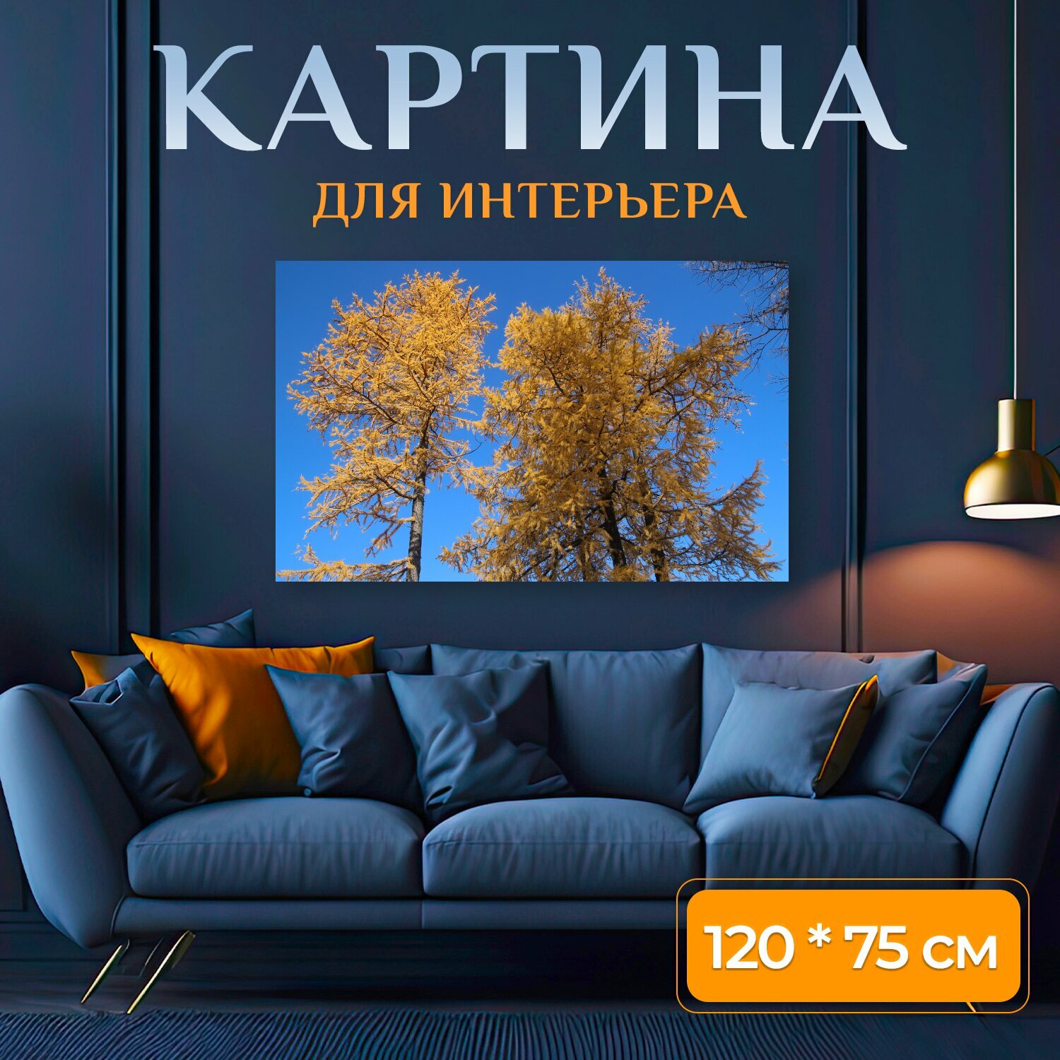 Картина на холсте "Осень, деревья, лиственница" на подрамнике 120х75 см. для интерьера информация: