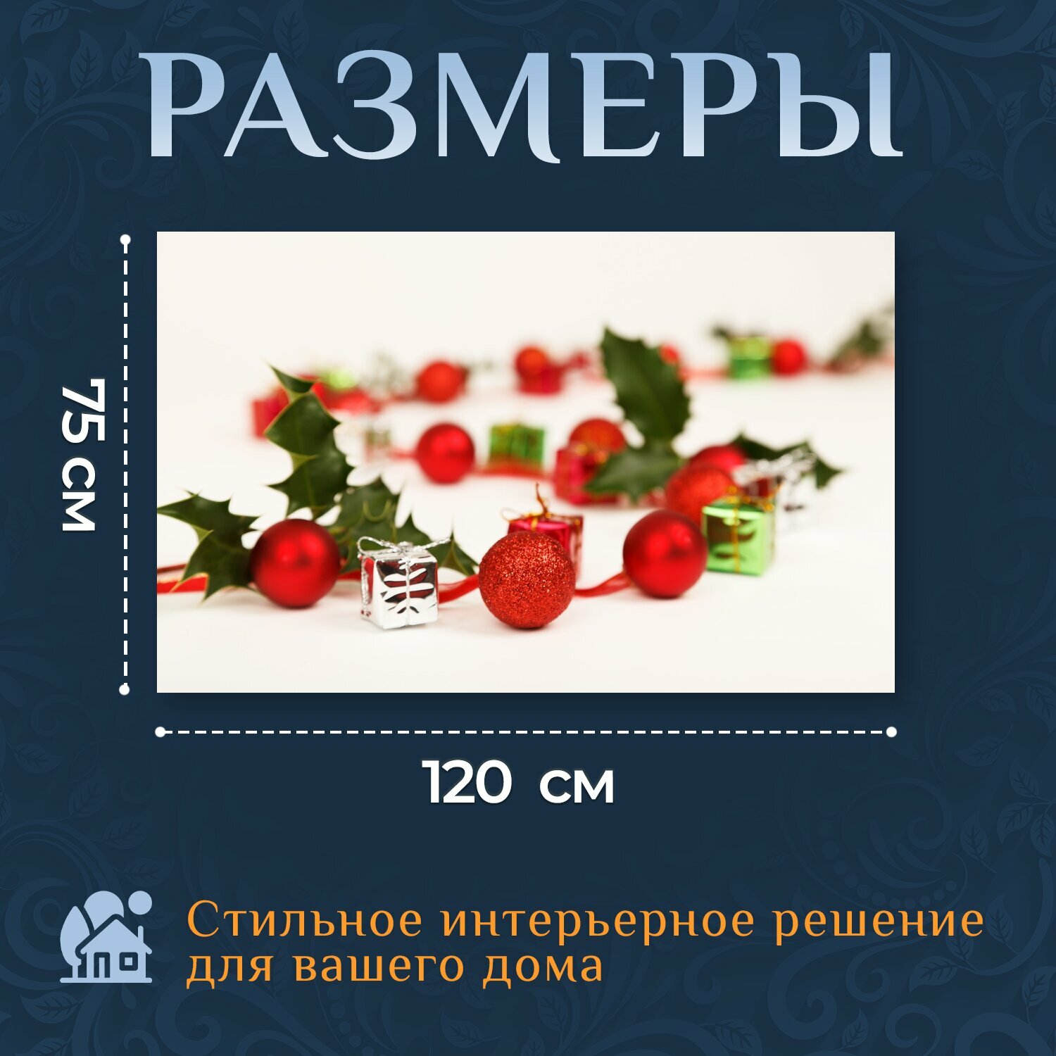 10 цен на Картина на холсте "Мяч, безделушка, холли" на подрамнике 120х75 см. для интерьера