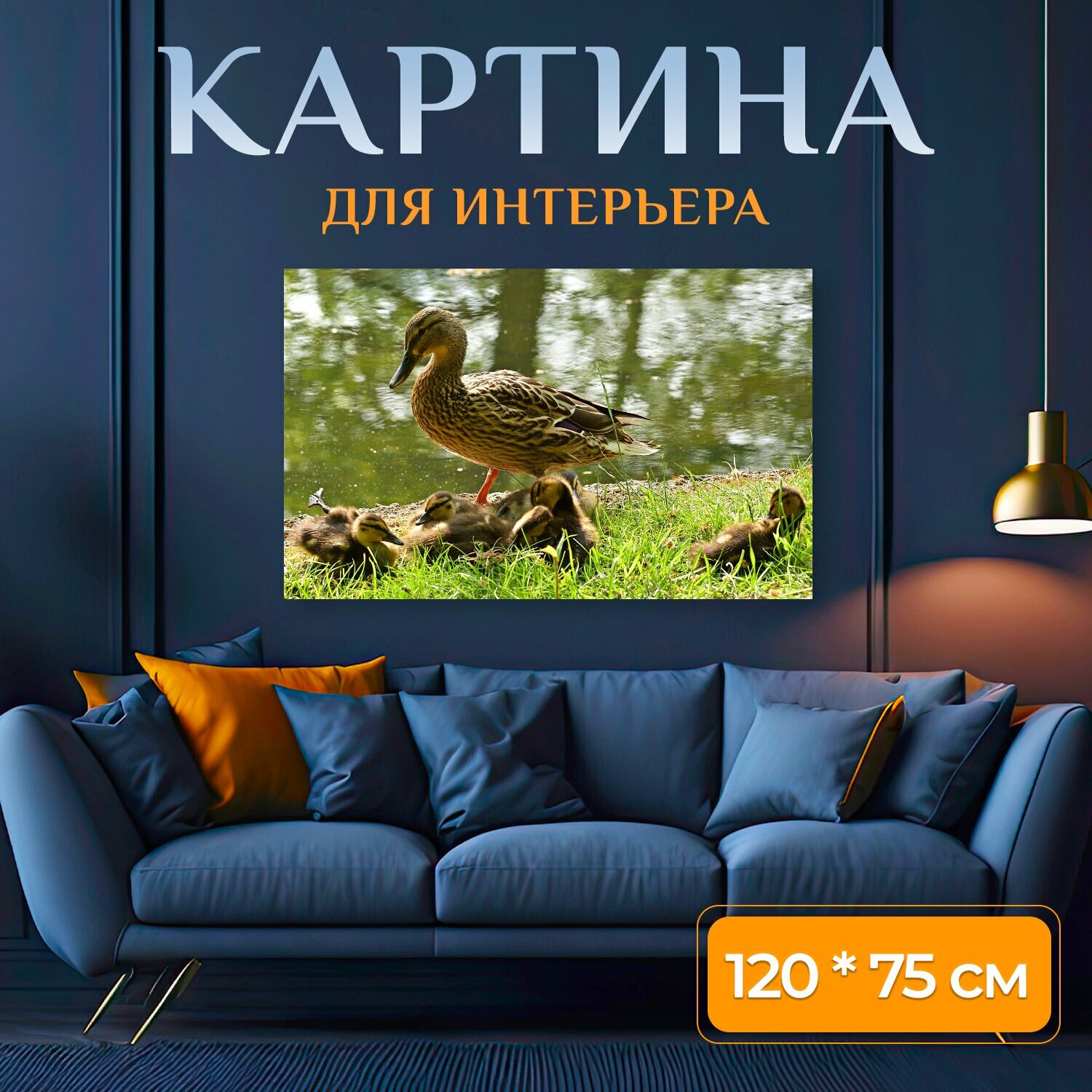 10 цен на Картина на холсте "Парка утка, цыпленок, милый" на подрамнике 120х75 см. для интерьера