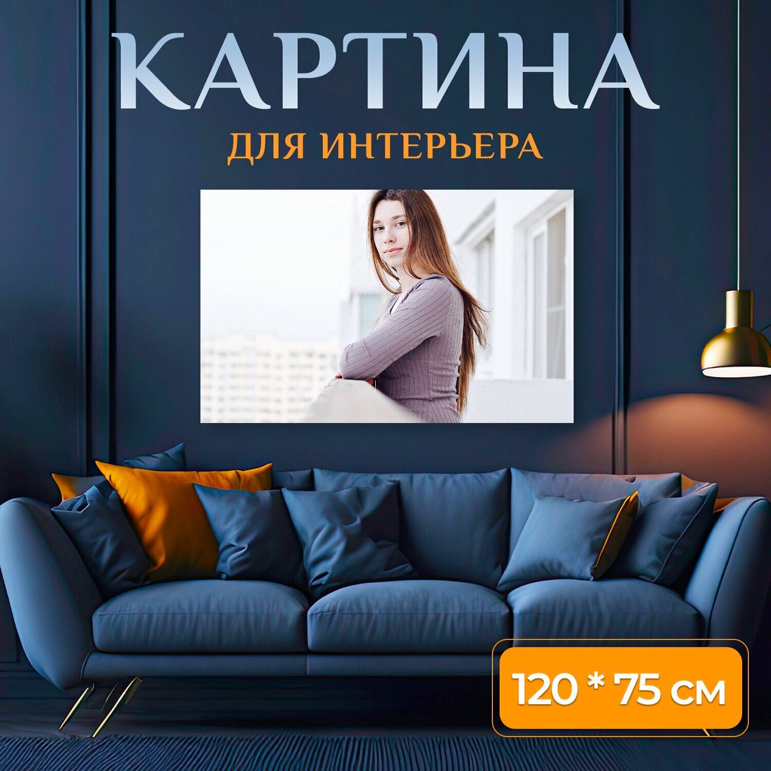 10 цен на Картина на холсте "Девушка, внутри, прекрасный" на подрамнике 120х75 см. для интерьера