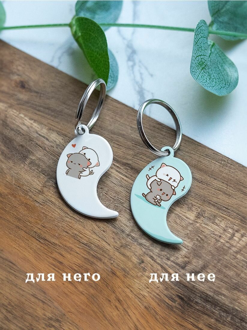 Отзывы на Парный брелок для ключей Инь Янь Мур Котики, парные подвески для влюбленных, парные кулоны украшения подвески для лучших подруг друзей, парный кулон подарок мужчине девушке ребенку на День рождения, брелок мужчине аниме на сумку рюкзак