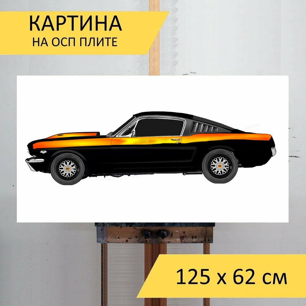 10 цен на Картина на ОСП "Форд, мустанг, машина" 125x62 см. для интерьера на стену