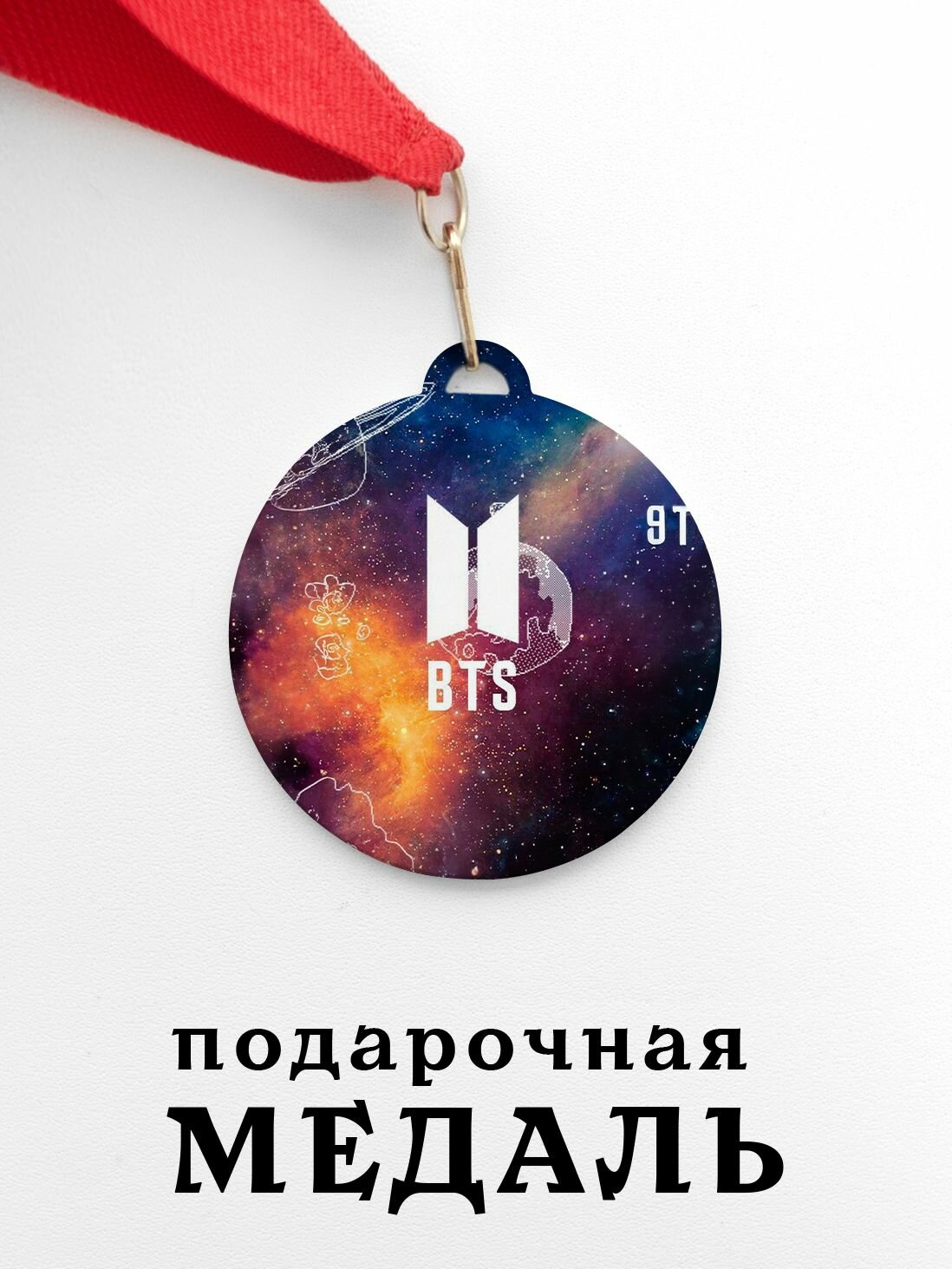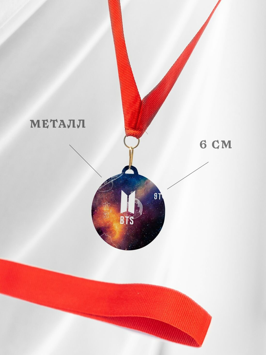 Медаль сувенирная спортивная подарочная БТС, металлическая на красной ленте информация: