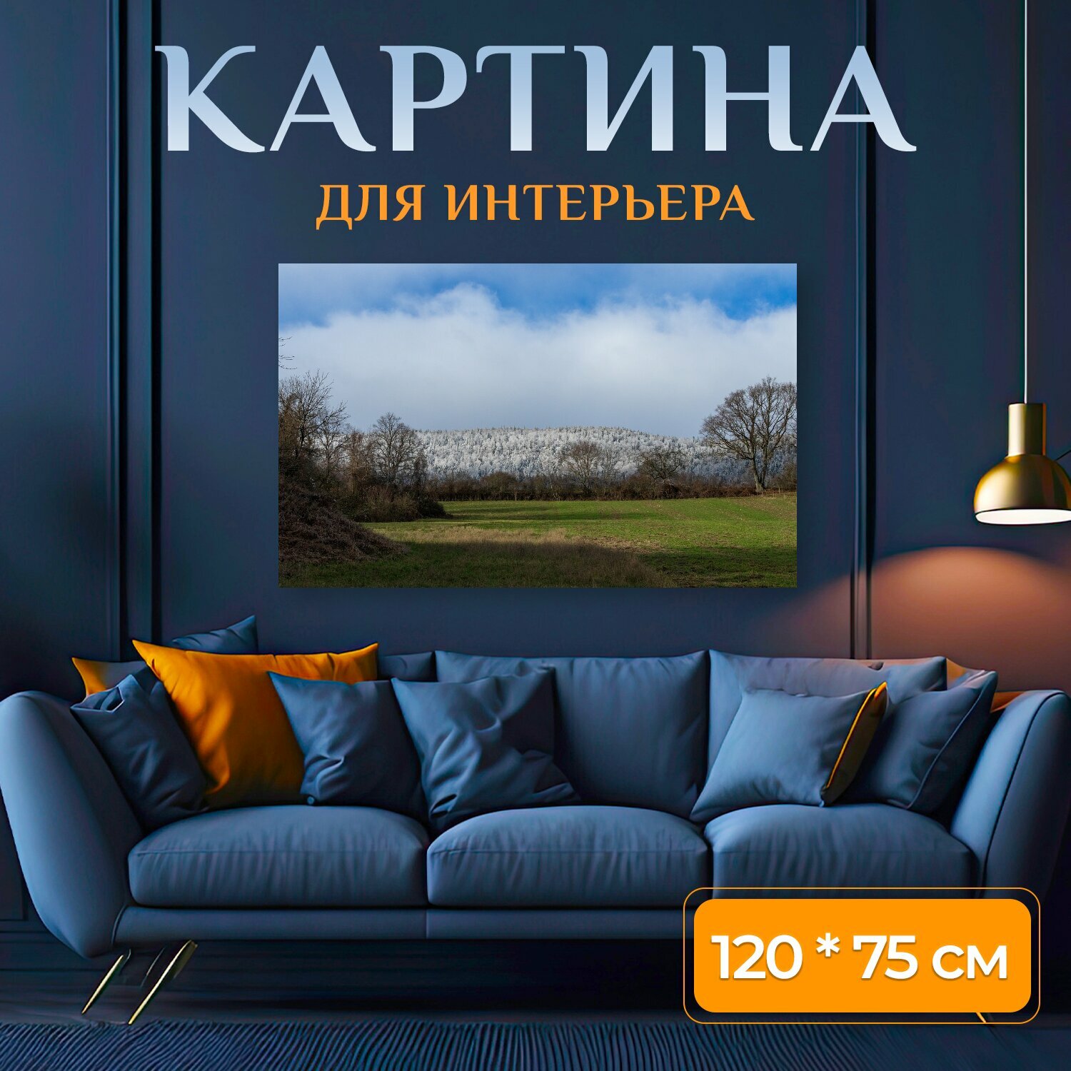 Картина на холсте "Красить, холм, мороз" на подрамнике 120х75 см. для интерьера информация: