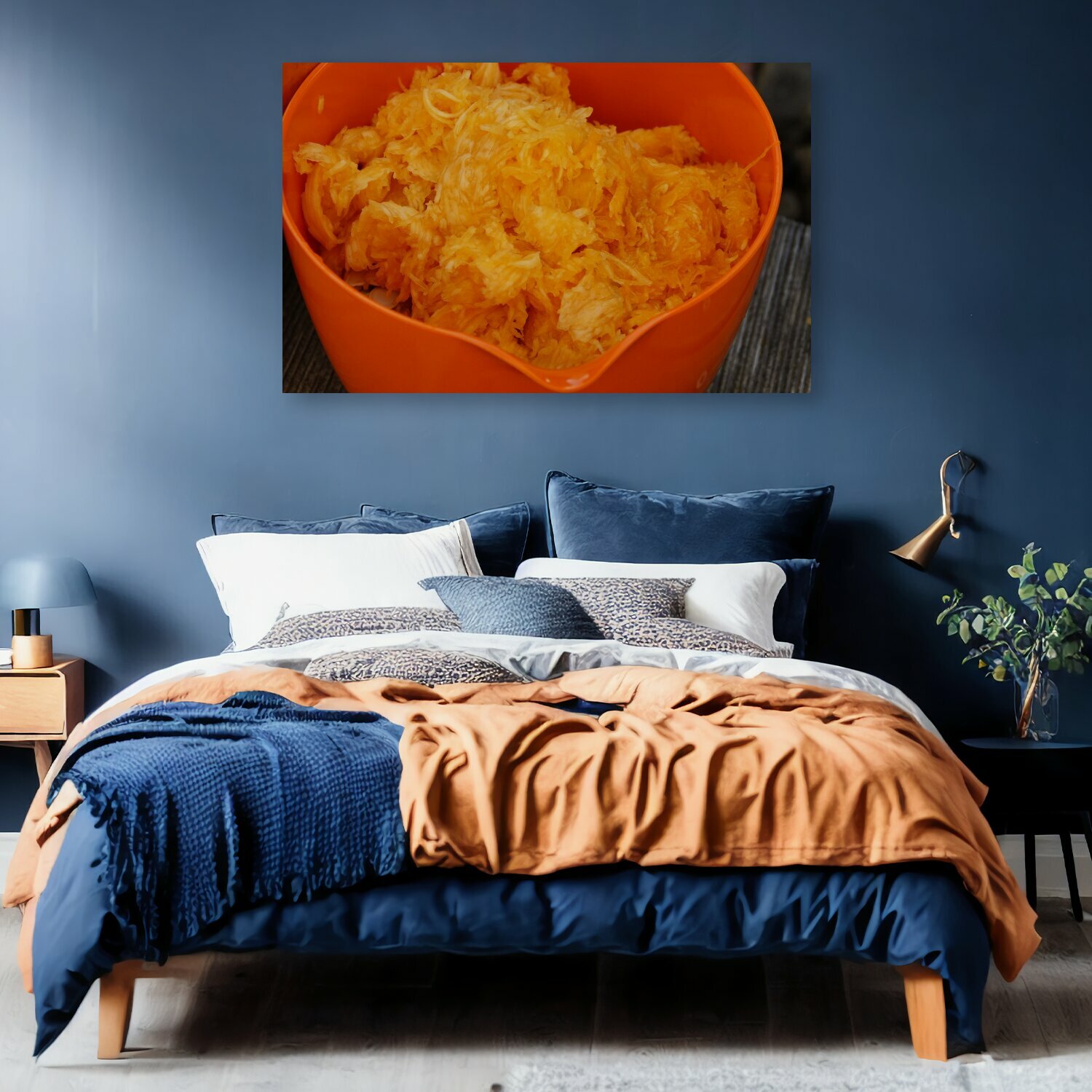 10 цен на Картина на холсте "Мякоть, тыква, апельсин" на подрамнике 120х75 см. для интерьера