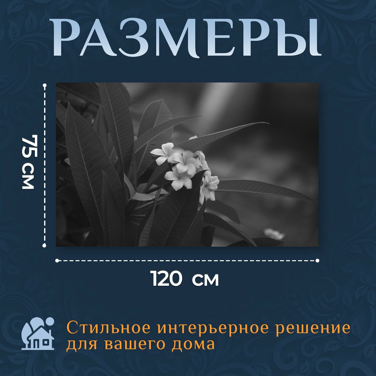 Отзывы на Картина на холсте "Цветок, черное и белое, цветочный" на подрамнике 120х75 см. для интерьера