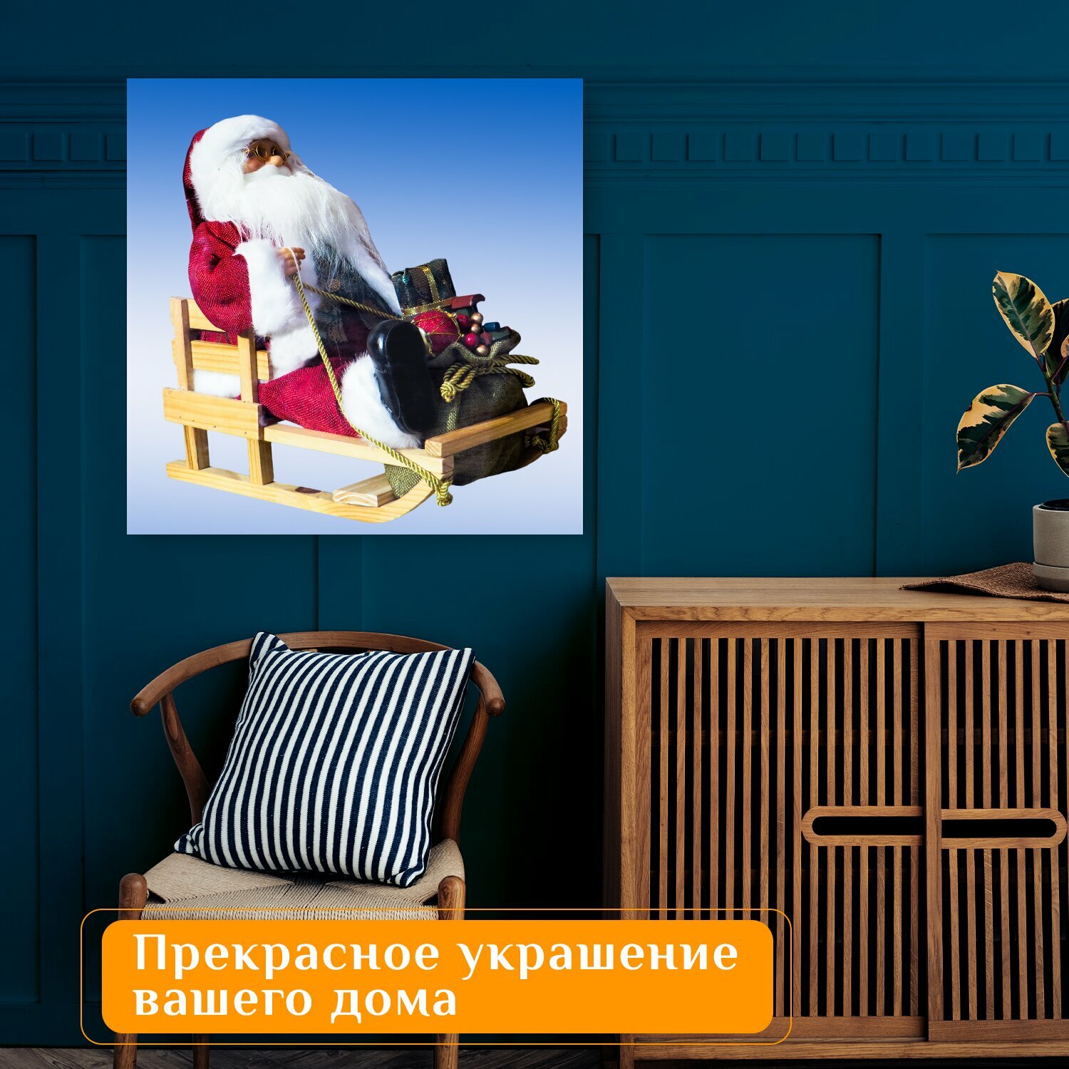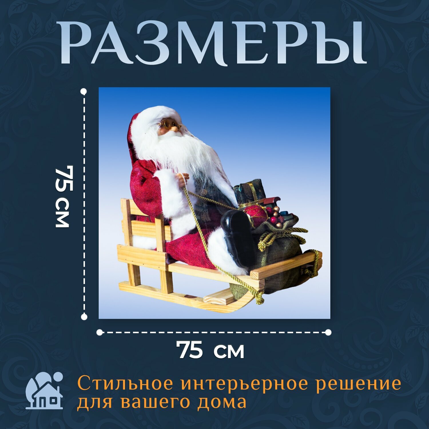 Картина на холсте "Дед мороз, санки, дед мороз с санями" на подрамнике 75х75 см. для интерьера информация: