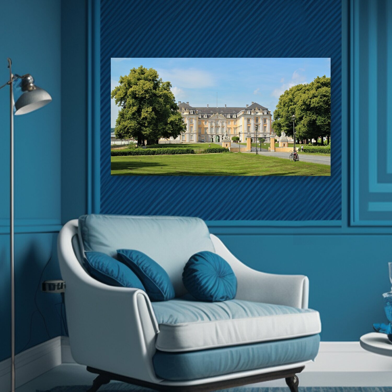 10 цен на Картина на холсте "Архитектура, лужайка, трава" на подрамнике 75х40 см. для интерьера